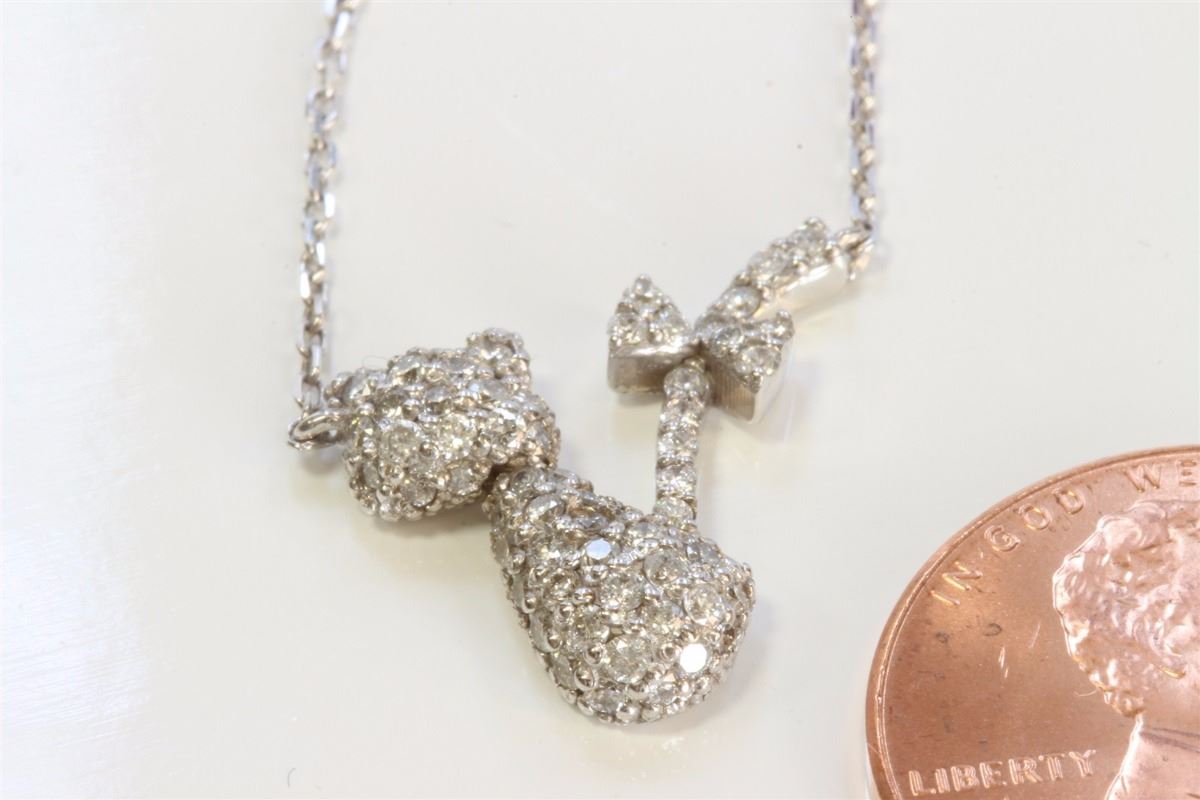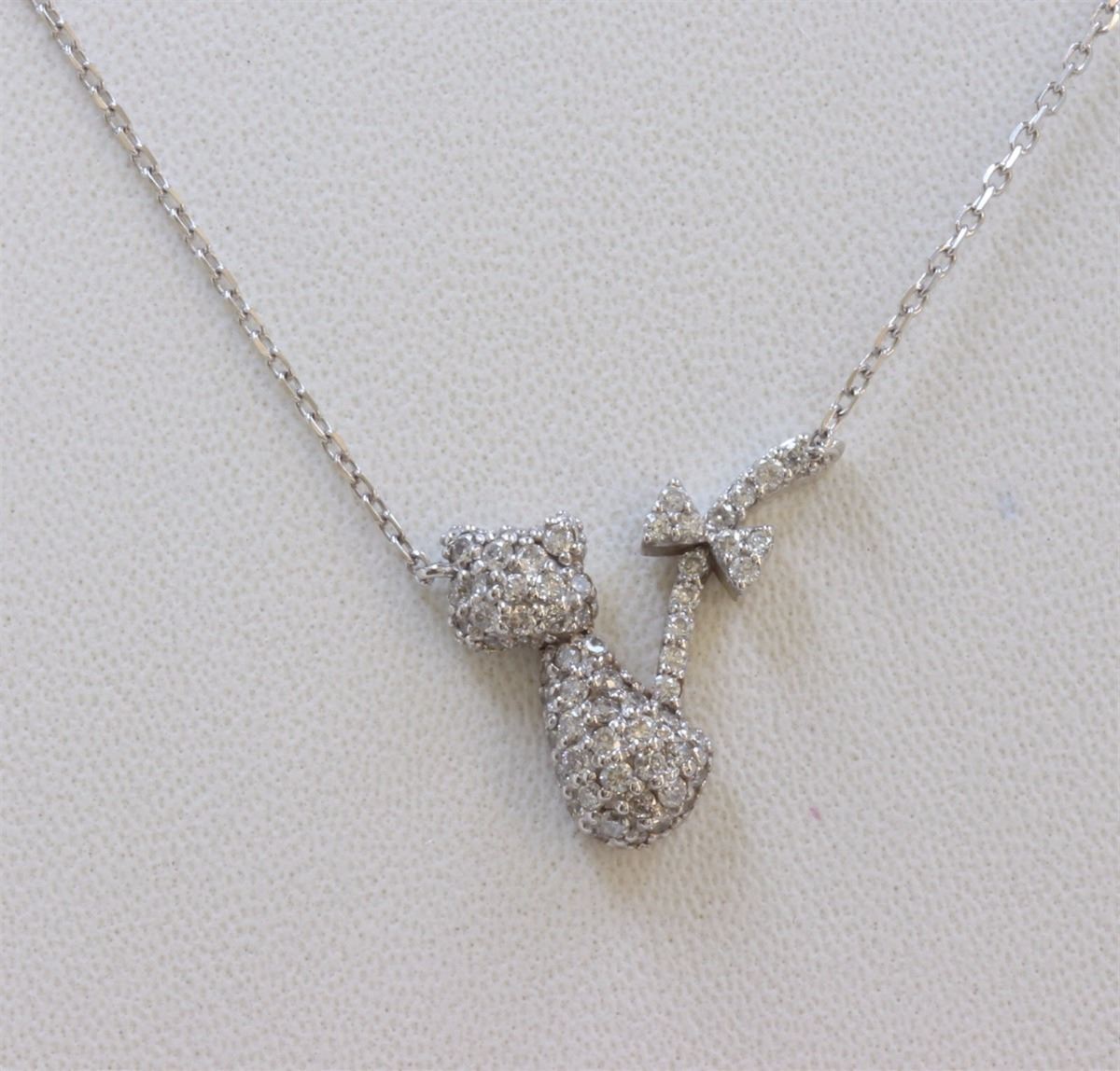 14K WHITE GOLD CAT PENDANT WITH CHAIN :3.1g/Diamond:0.5ct