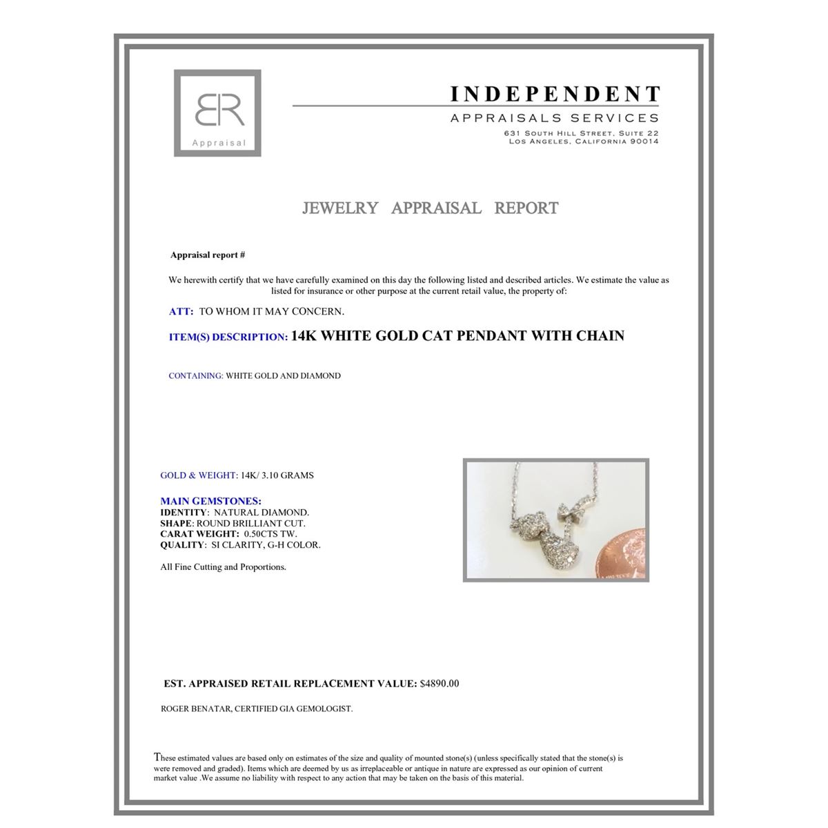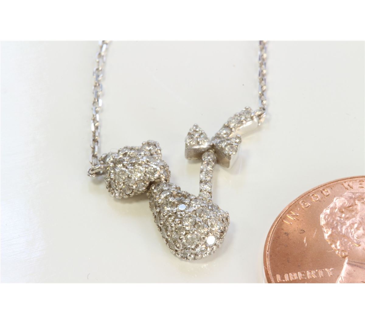 14K WHITE GOLD CAT PENDANT WITH CHAIN :3.1g/Diamond:0.5ct