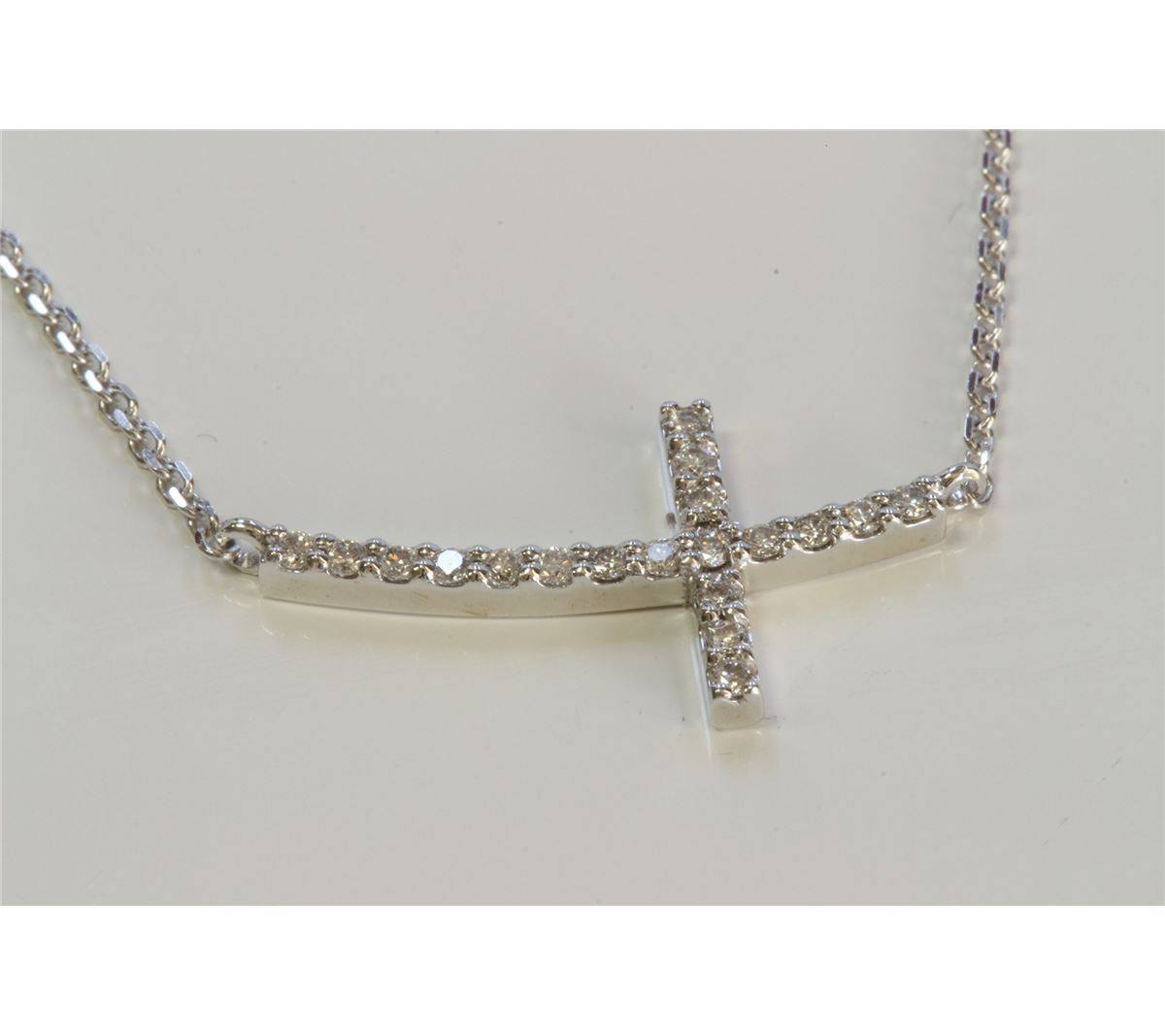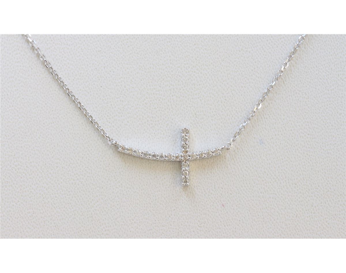 14K WHITE GOLD CROSS PENDANT WITH CHAIN :2.48g/Diamond:0.14ct