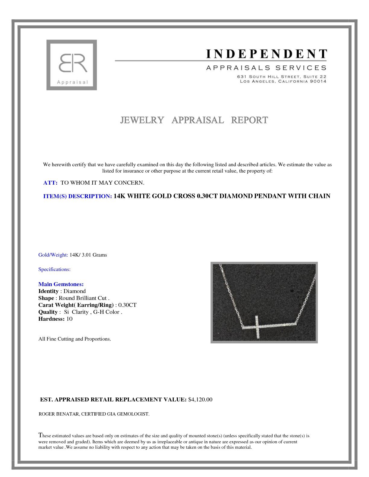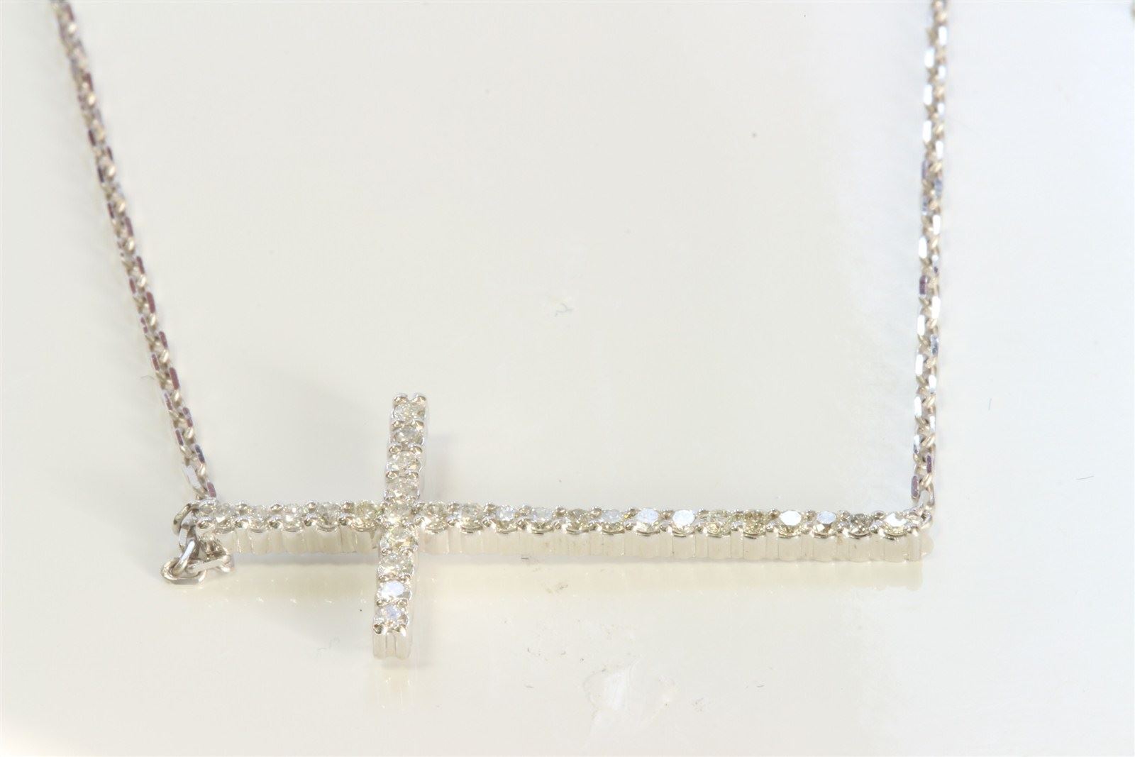 14K WHITE GOLD CROSS PENDANT WITH CHAIN 3.01GRAM/DIAMOND 0.30CT/#R8002