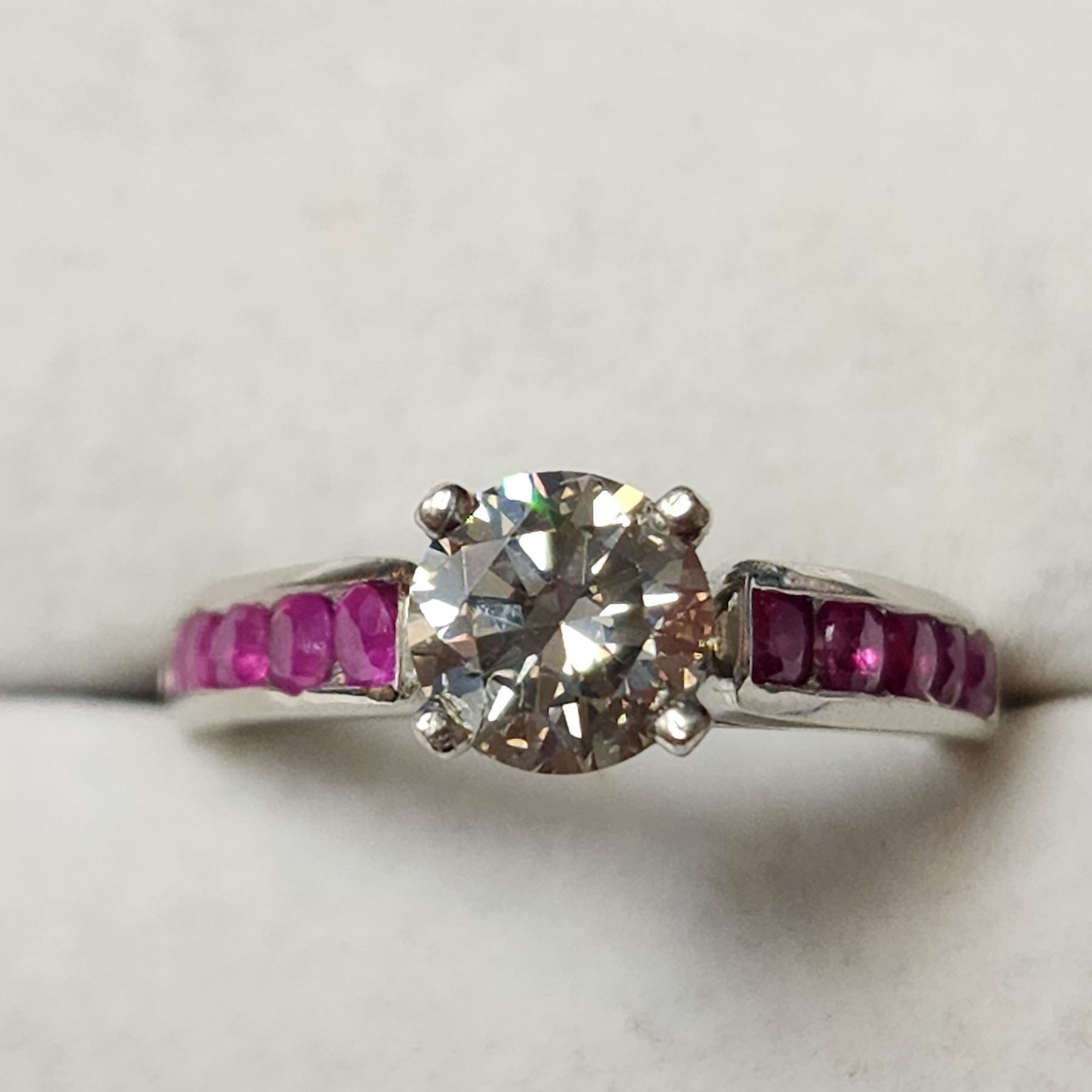 14K WHITE GOLD DIAMOND (1.05CT,I,I1) RUBY(0.45CT)