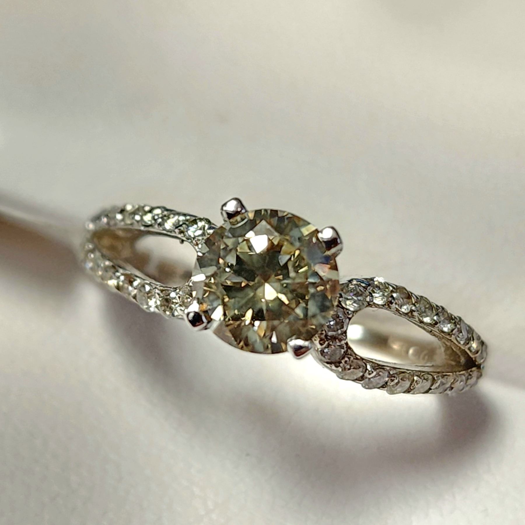 14K WHITE GOLD DIAMOND (1.1CT,SI1,YELLOWISH GREEN)