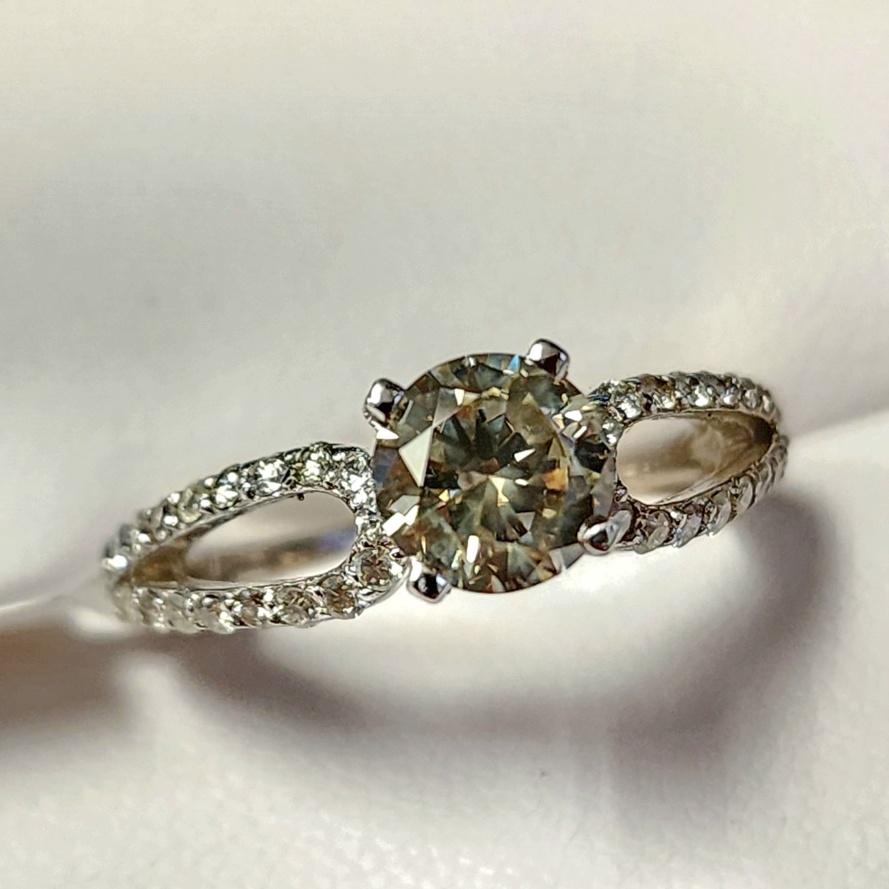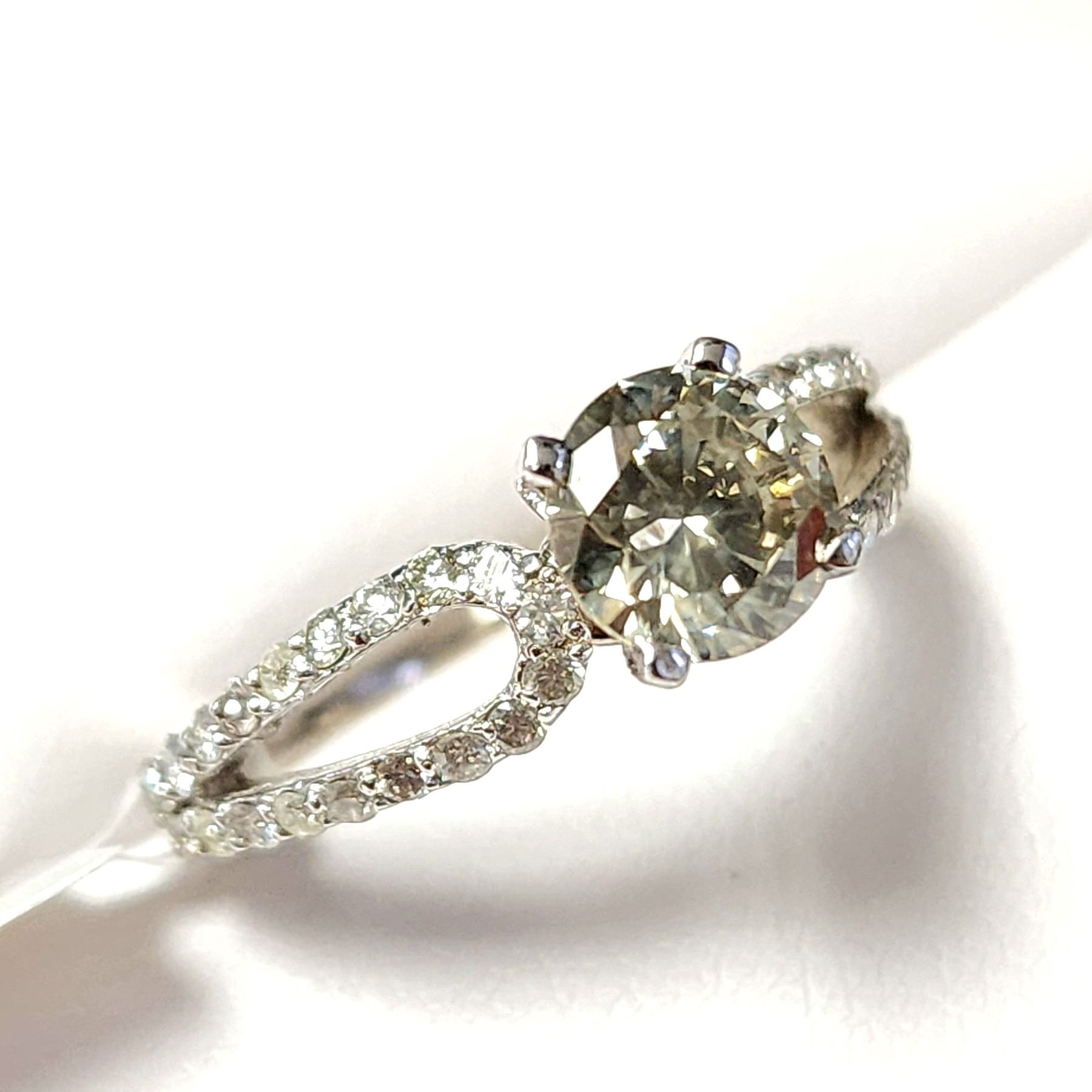 14K WHITE GOLD DIAMOND (1.1CT,SI1,YELLOWISH GREEN)