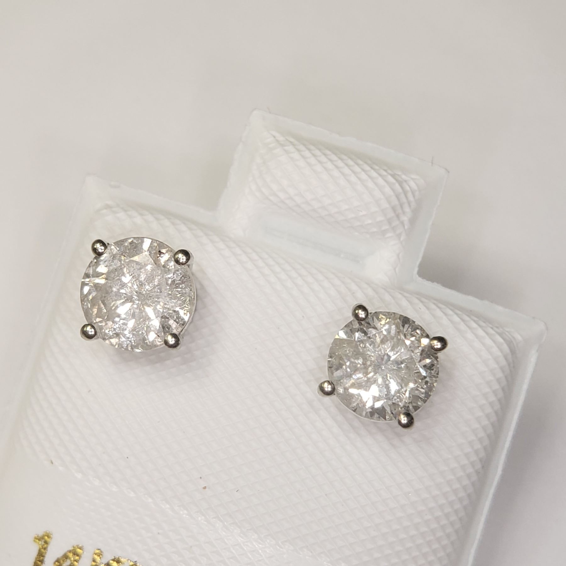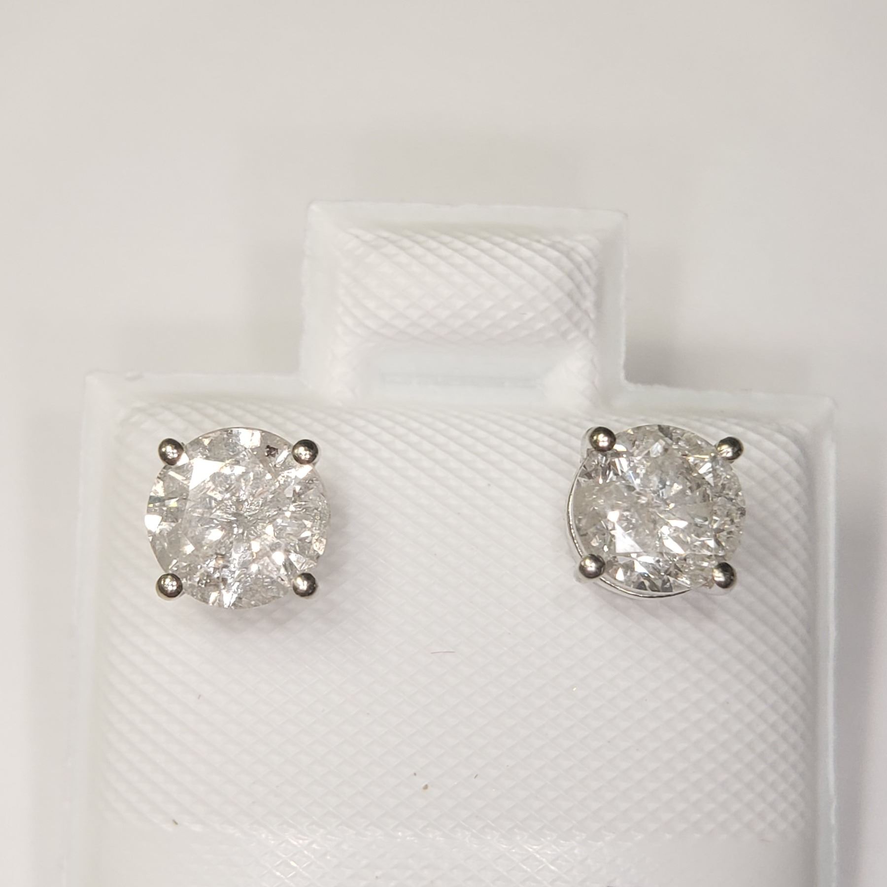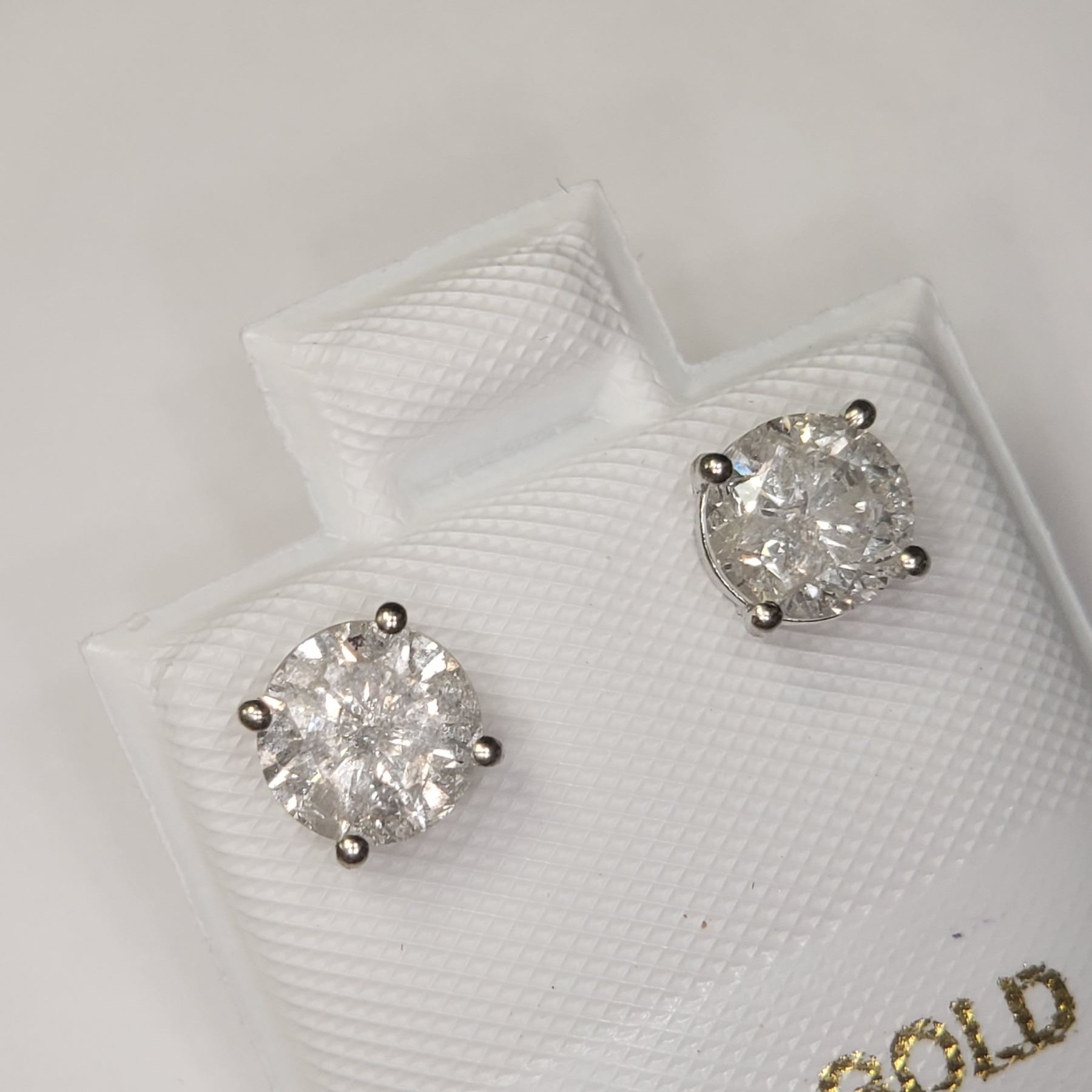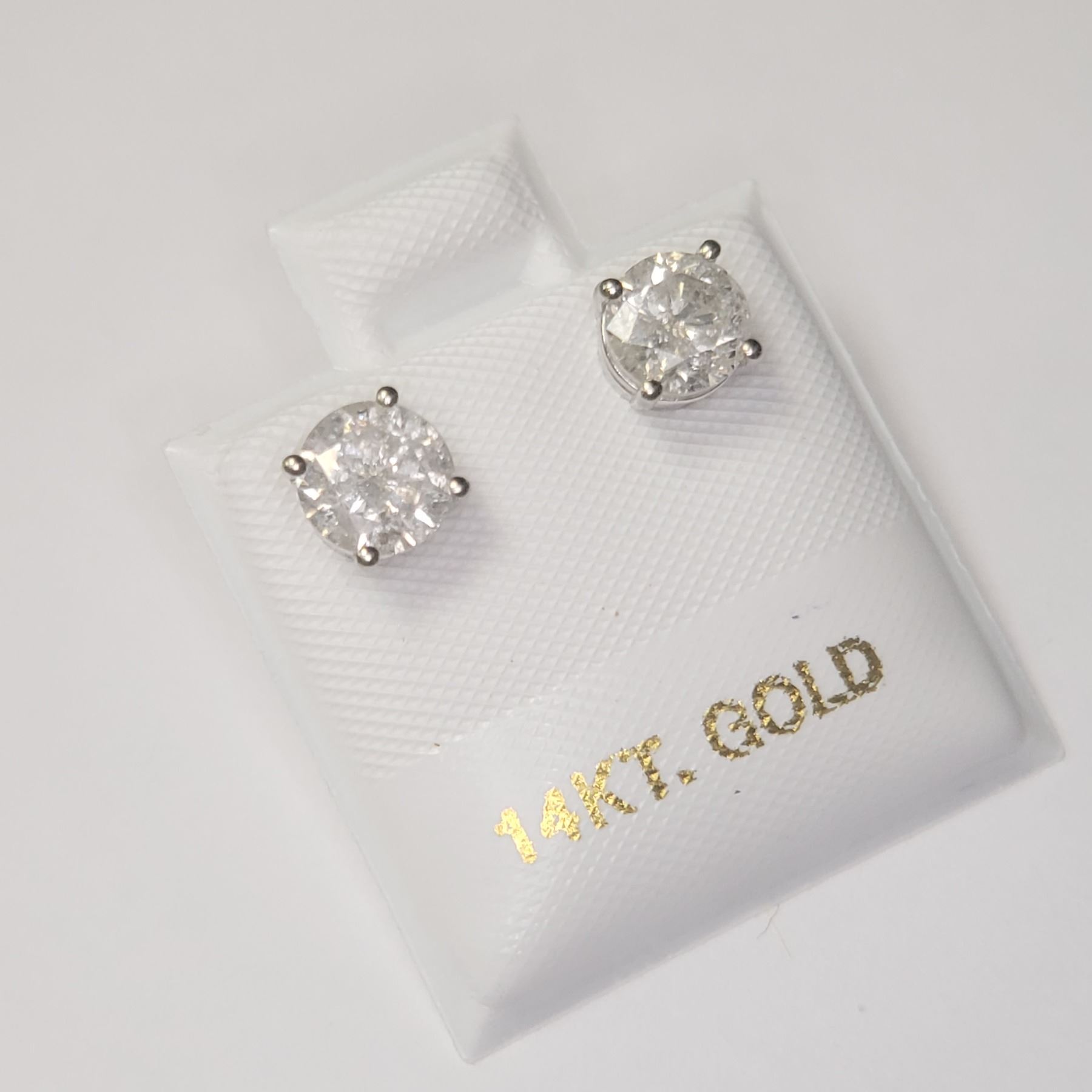 14K WHITE GOLD DIAMOND ( 1.36CT,I1-2,H-I) EARRINGS
