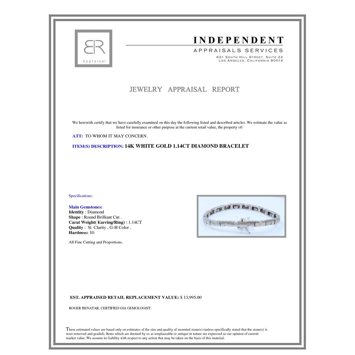 14K WHITE GOLD DIAMOND BRAC ELET:15.40GRAMS/DIAMOND:1.141CT/#R8012