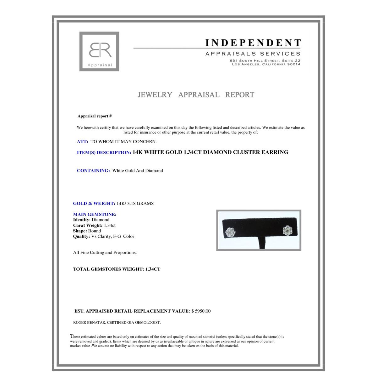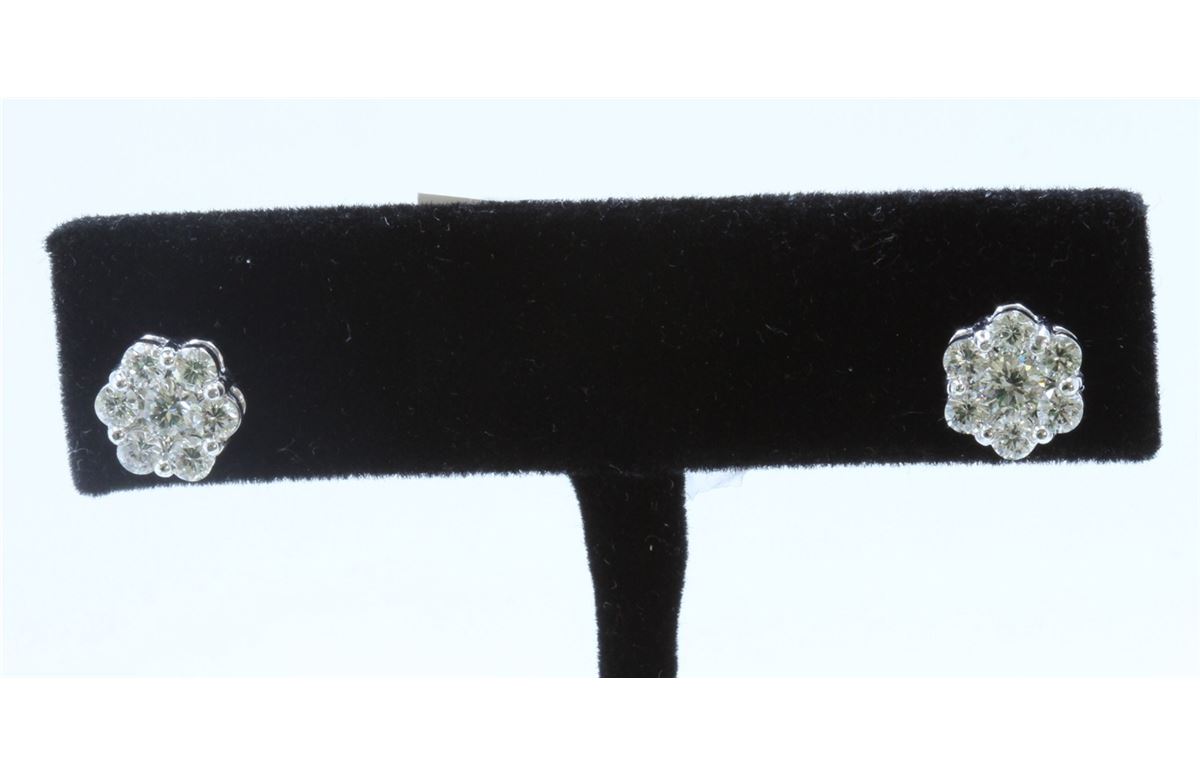 14K WHITE GOLD DIAMOND CLUSTER EARRING:3.18 GRAMS/DIAMOND:1.34CT/#R8036