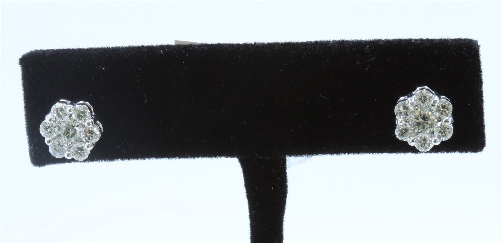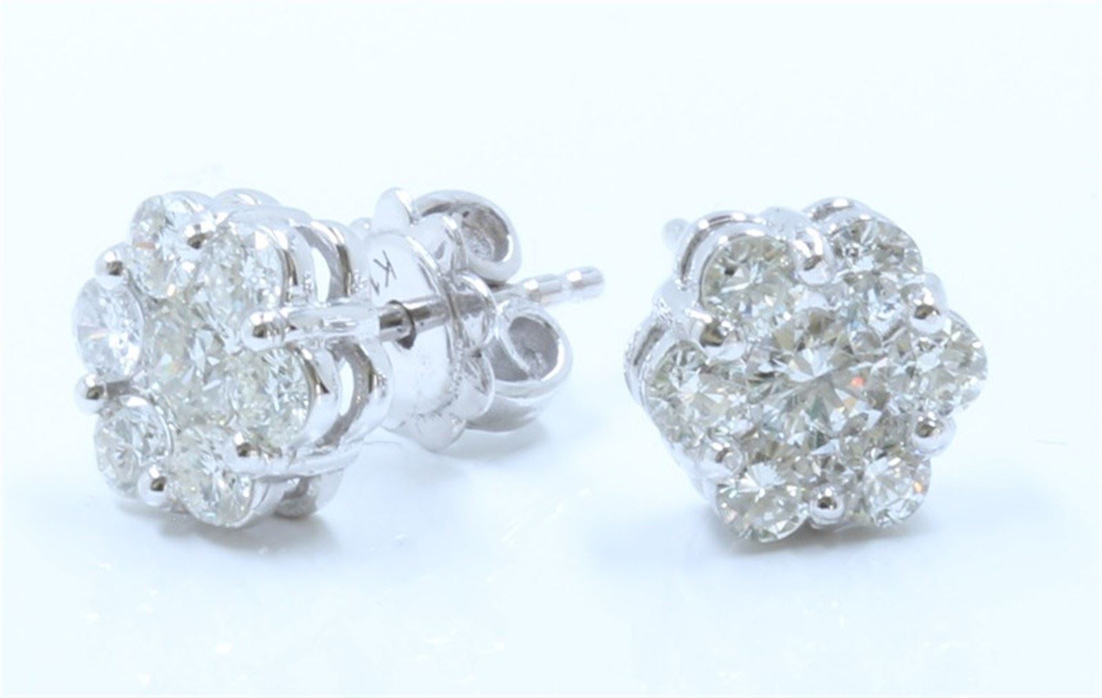 14K WHITE GOLD DIAMOND CLUSTER EARRING:3.18 GRAMS/DIAMOND:1.34CT/#R8036
