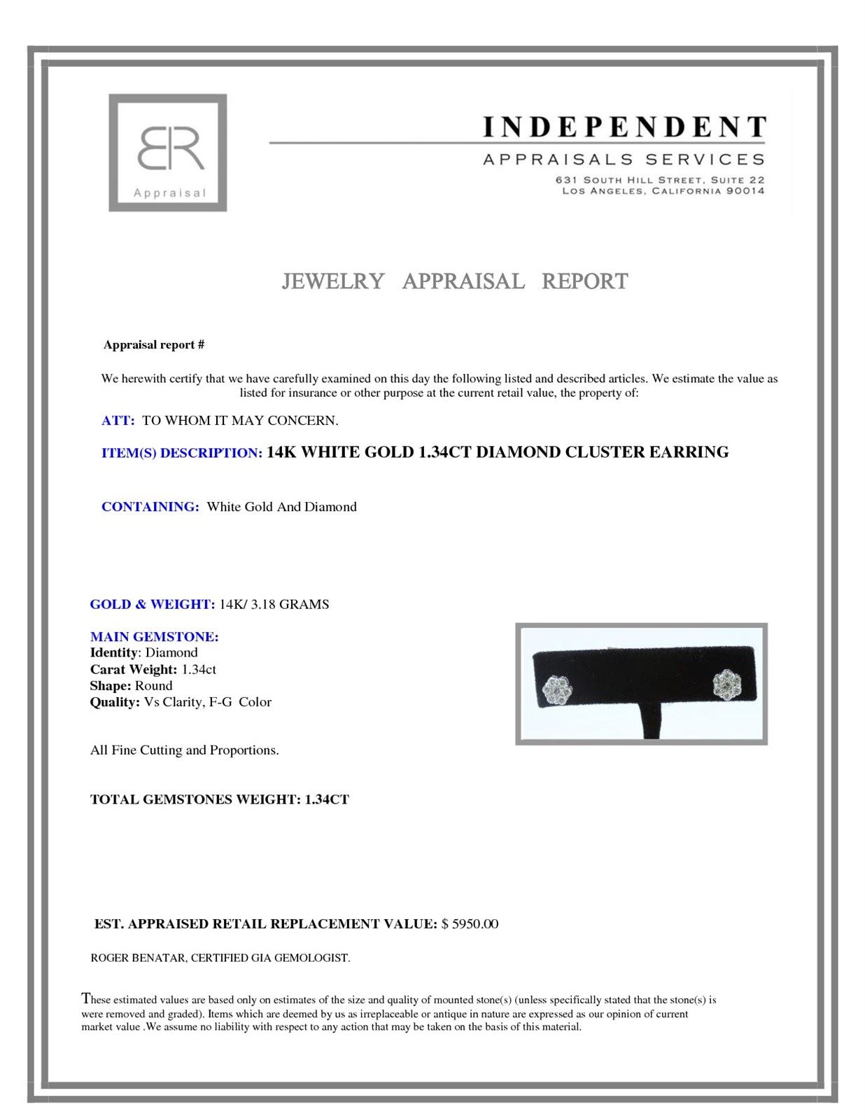 Not all jewelry, watches or loose stones are appraised and the appraisals are provided for bidders only in certain instances at the discretion of the Company. Appraisals, if any should be use to verify gemstone and or metal weights. The appraisals should not be used for valuation of any item. No guarantee, warranty or representation is intended by the Company in any appraisal. All dimensions and weights of such lots are approximate and are consistent with standards and practices in the industry. Condition reports are provided as a service to the prospective buyer. Bidders should take note that such descriptions are not warranties and that watches may need general service, change of battery or further repairs for which the buyer is solely responsible