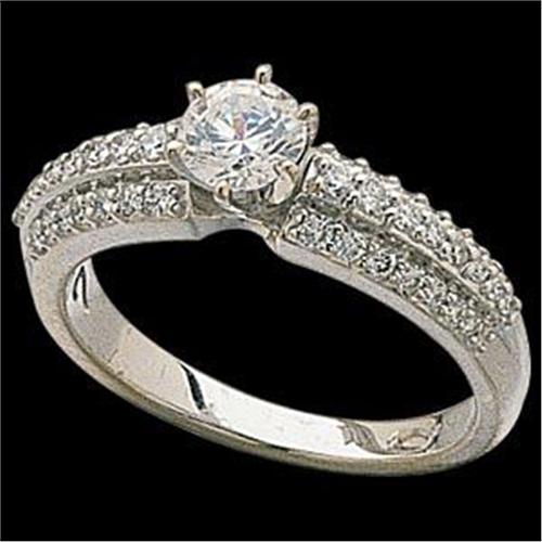 14k White Gold Engagement Ring featuring a Brilliant Cut Round Diamond = .49 CARATS! This Diamond is a beautiful 'SI' Clarity and a FINE 'H' Color! There are 2 rows of Diamonds set either side, and the Diamond Total Weight of this Engagement Ring = .86 CARATS! This Diamond Engagement Ring is now a Size 7, but I can resize it for you as small as a Size 3 and as large as a Size 10!