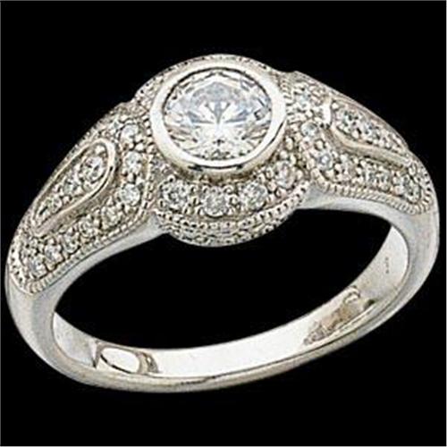 Antique Style 14k White Gold Diamond Engagement Ring featuring a beautiful round 'Sparkling' Diamond = .50 CARATS! This Diamond is a FINE 'SI1' Clarity and a FINE 'H' Color. The Diamond TOTAL WEIGHT of this magnificent Engagement ring = .88 CARATS!! This ring IS in MINT condition. It is a Size 6 and I can resize it for you.