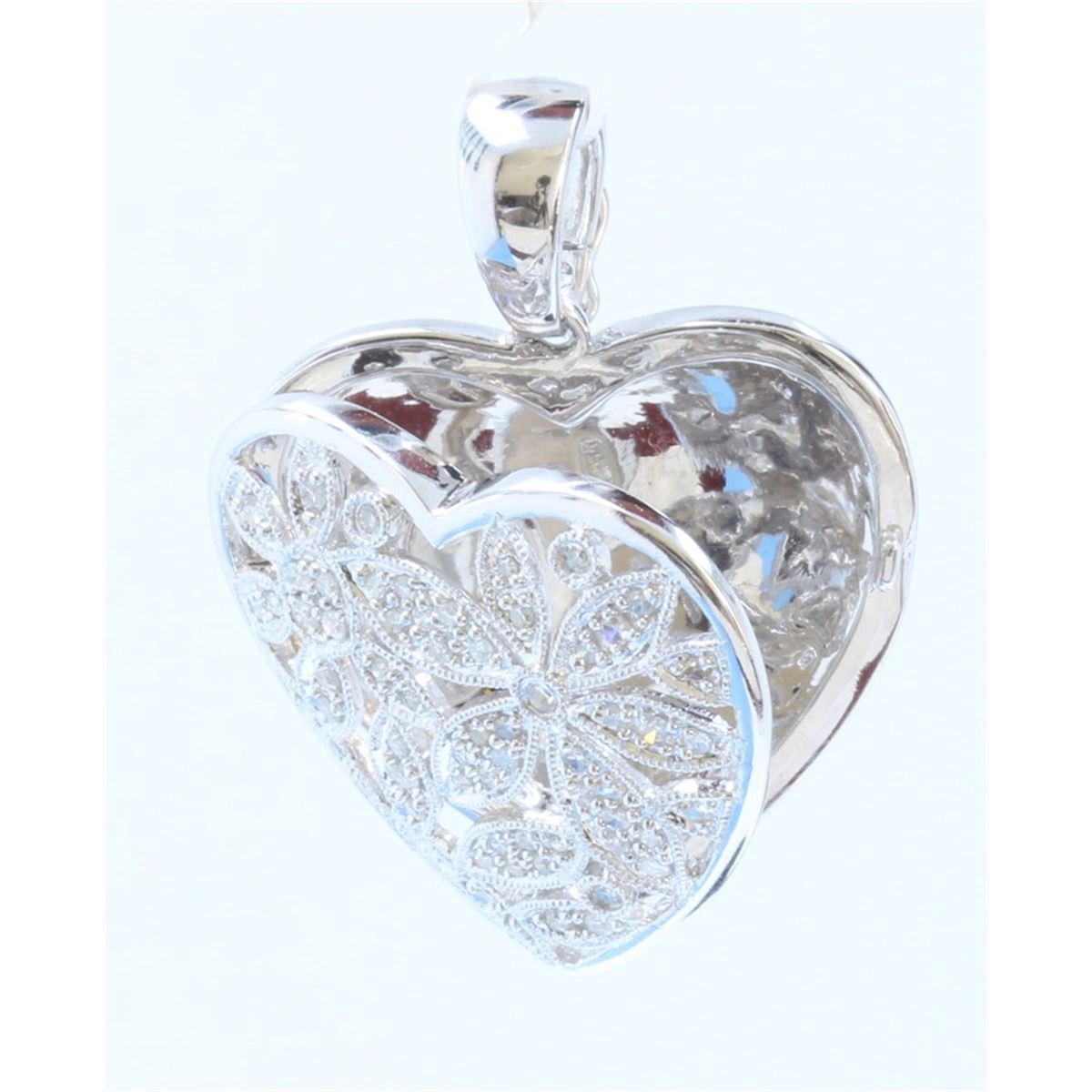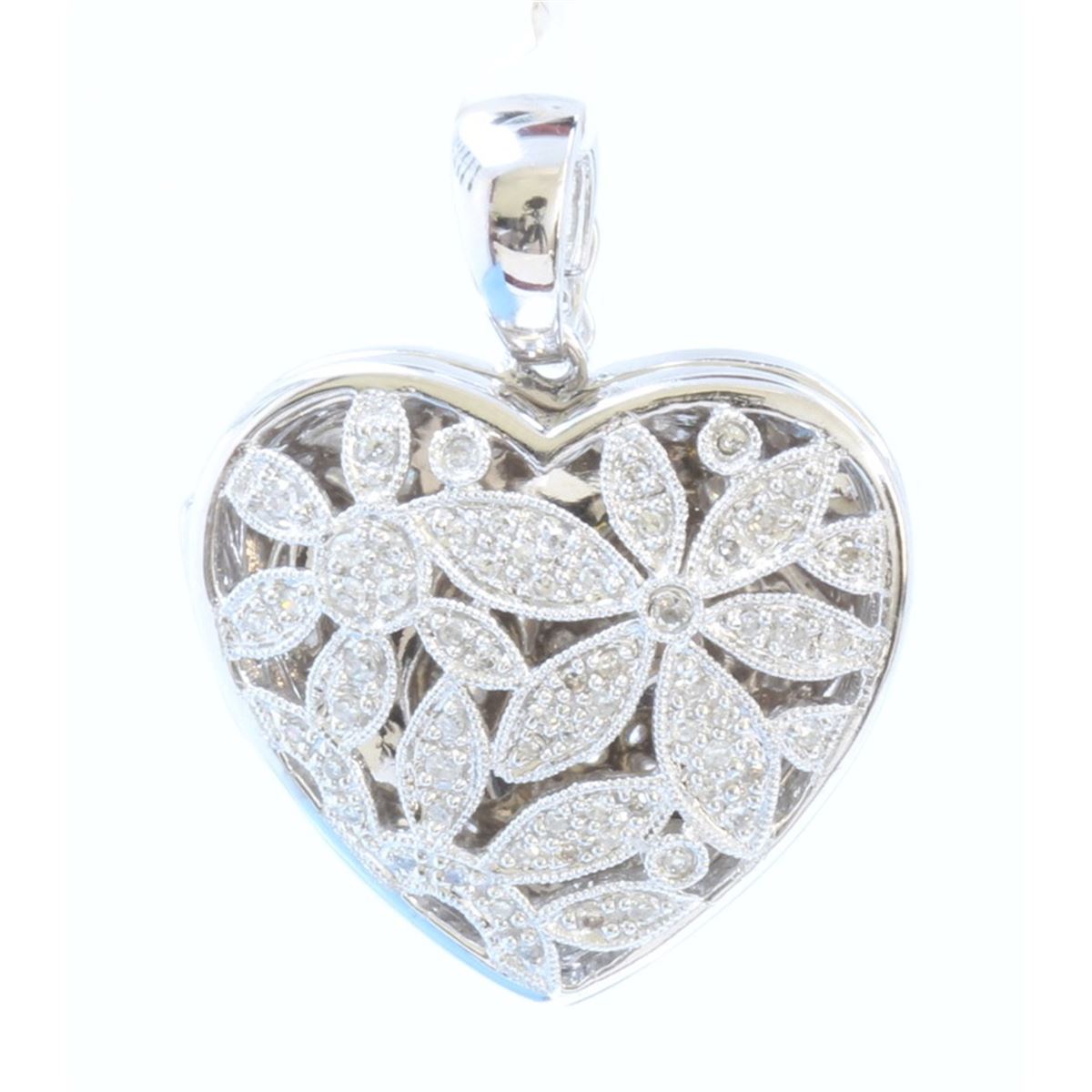 14K WHITE GOLD DIAMOND HEART LOCKET PENDANT:8 GRAMS/DIAMOND:0.65CT/#R8046