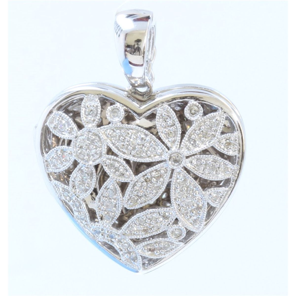 14K WHITE GOLD DIAMOND HEART LOCKET PENDANT:8 GRAMS/DIAMOND:0.65CT/#R8046