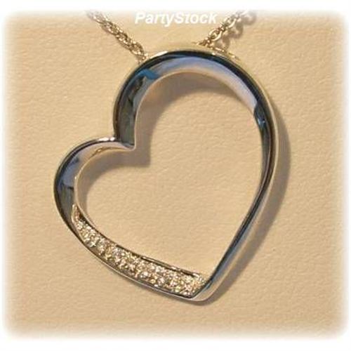 Solid 14K White Gold sets this large, Diamond embellished Heart pendant.