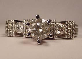 14K WHITE GOLD DIAMOND LADIES RING - SIZE 7.25 - Comes with GLA Appraisal of $5,517.00. 1 Round Full Cut Diamond Center Stone .5 CT., 2 Adjacent Round Full Cut Diamonds .12 CT., 26 Round Full Cut Diamonds .22 CT. Total Diamonds - 0.84 CT., TW - 4.50 Grams