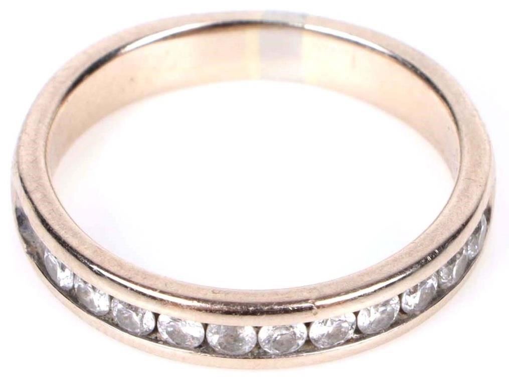 14K white gold diamond ladies ring. Gemstones to include eleven 0.03ct round cut diamond gemstones.