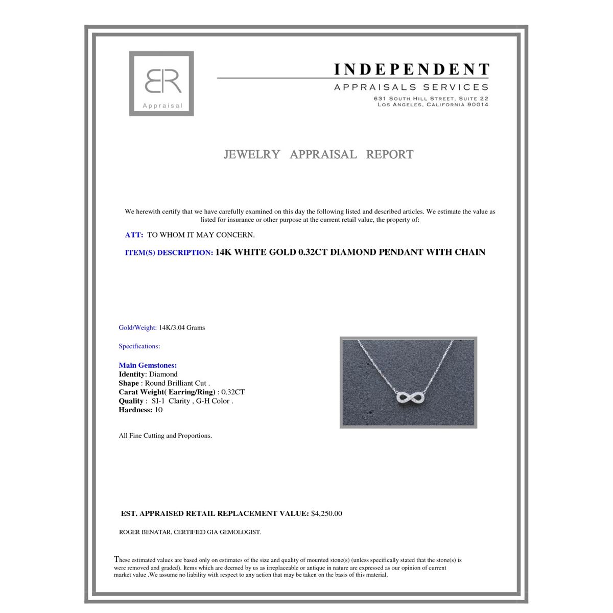 14K WHITE GOLD DIAMOND PENDANT WITH CHAIN:3.04 GRAMS850/DIAMON:0.32CT/#R8017
