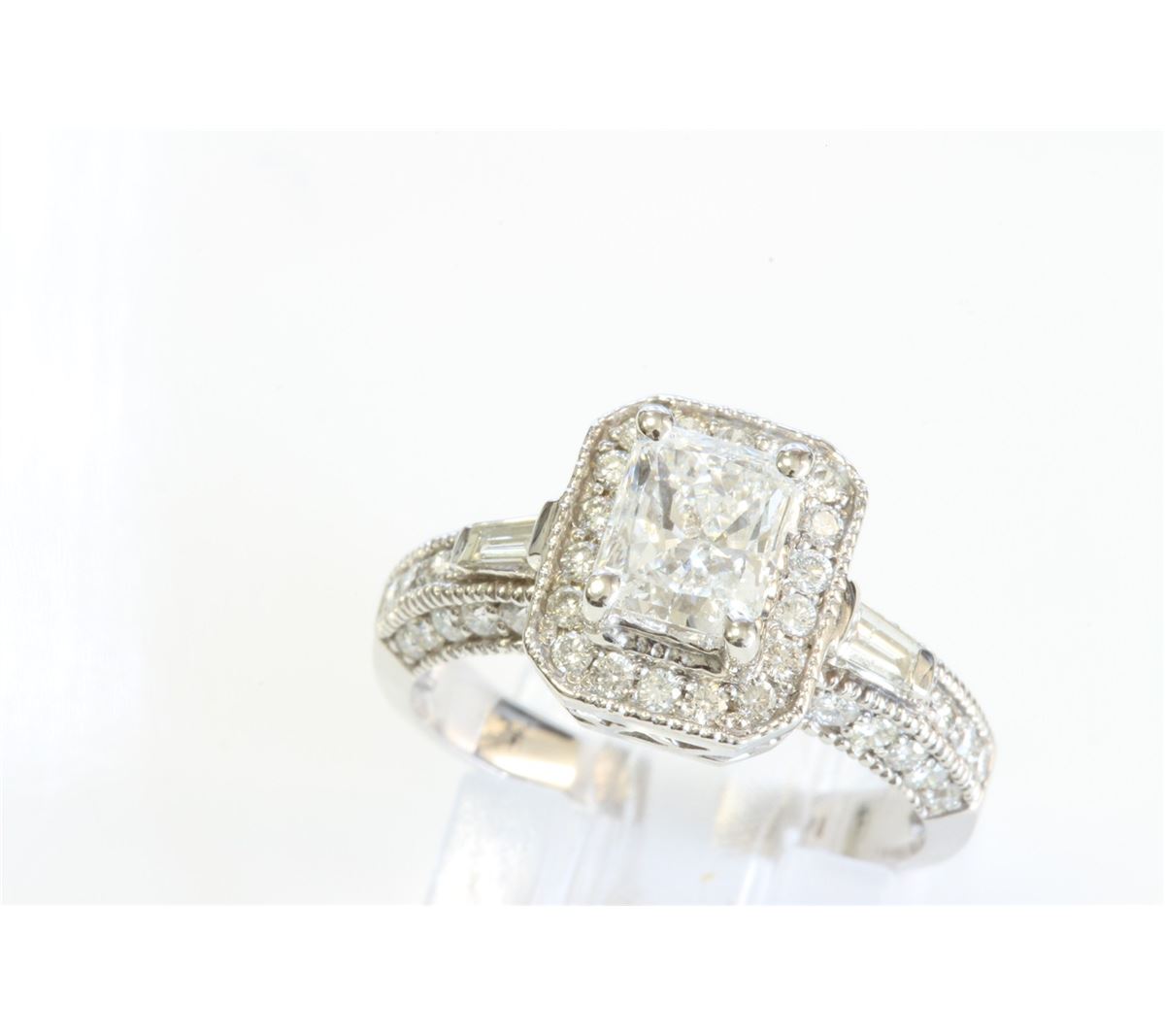 14K WHITE GOLD DIAMOND RING:4.20 GRAMS/DIAMOND SIDES:0.69CT/RADIANT CUT DIAMOND CENTER :1.01CT/#R8047