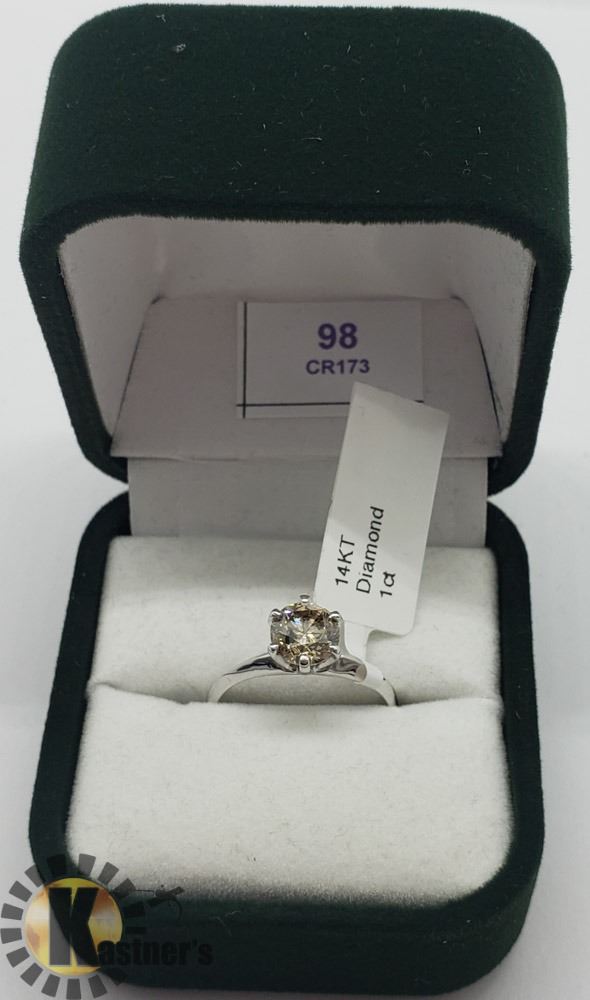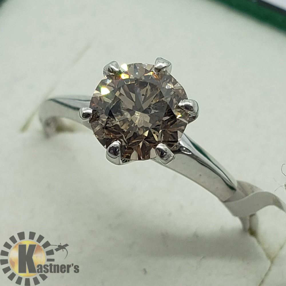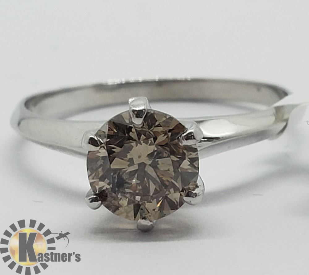 #98-CR173:R3200: 14K WHITE GOLD DIAMOND (I1,FANCY BROWN, 1CT) RING. - JEWELRY.