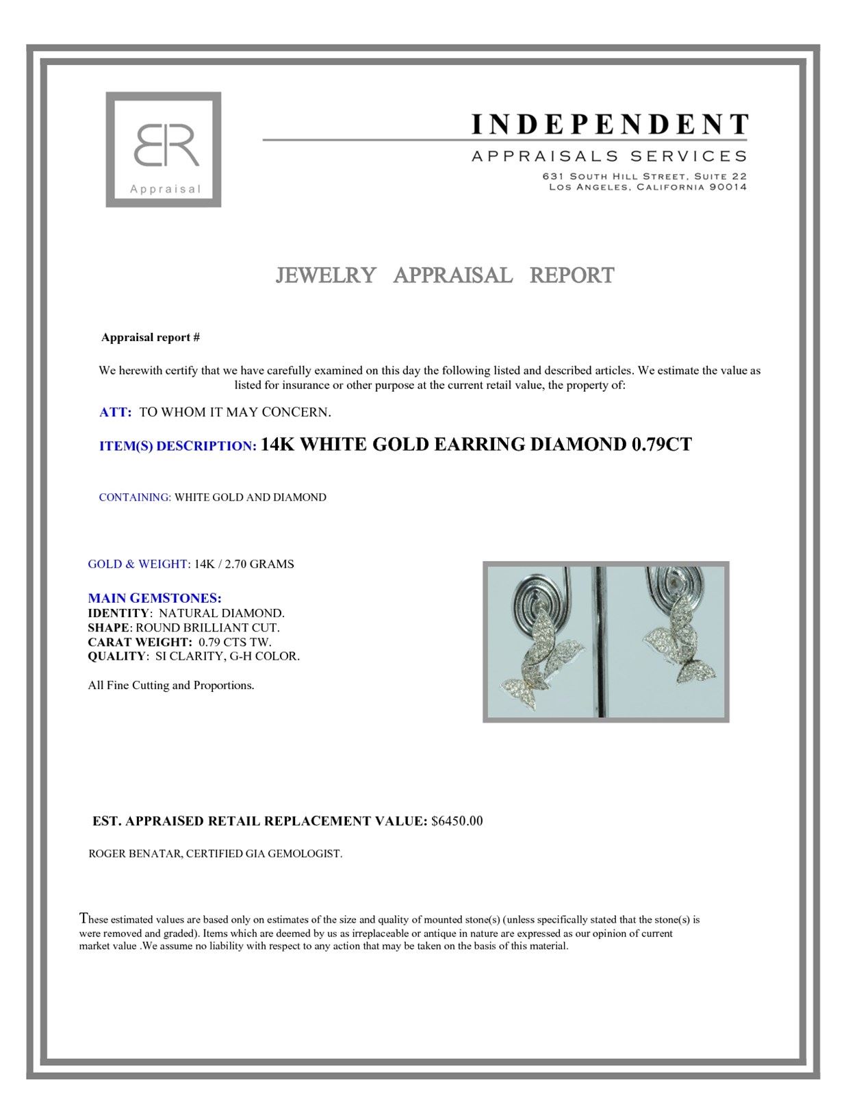 14K WHITE GOLD EARRING 2.70GRAM DIAMOND 0.79CT