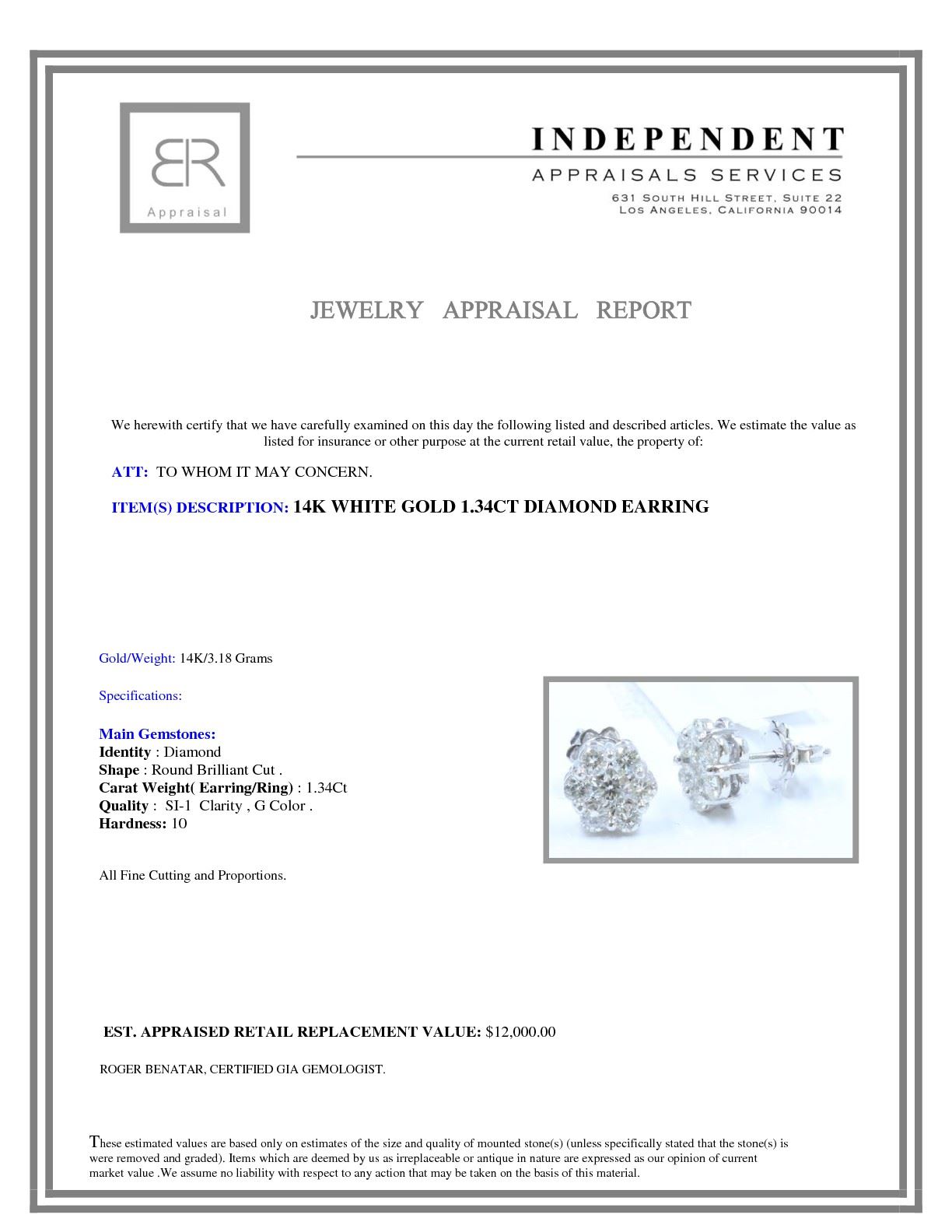 14K WHITE GOLD EARRING:3.18GRAMS2400/DIAMOND:1.34CT/#R8016