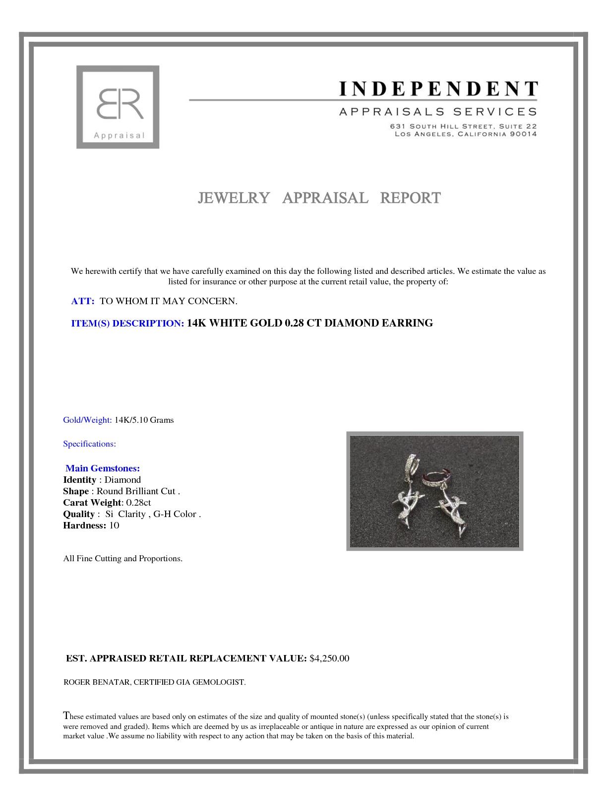 14K WHITE GOLD EARRING:5.1g/Diamond:0.28ct