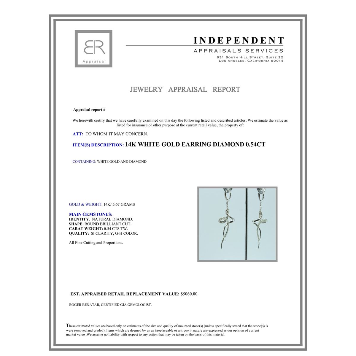 14K WHITE GOLD EARRING 5.67GRAM DIAMOND 0.54CT
