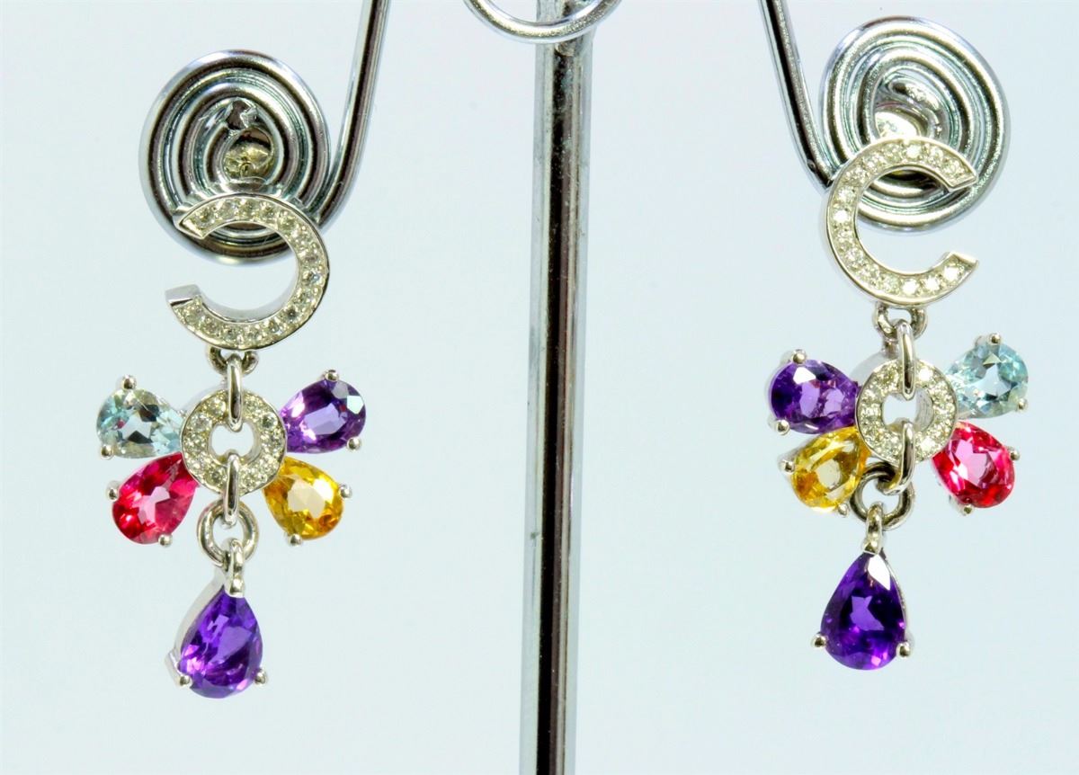 14K WHITE GOLD EARRING 6.80GRAM DIAMOND 0.33CT PINK TOPAZ 2.00CT AMETHYST 4.00CT YELLOW TOPAZ 0.83CT BLUE TOPAZ 2.00CT