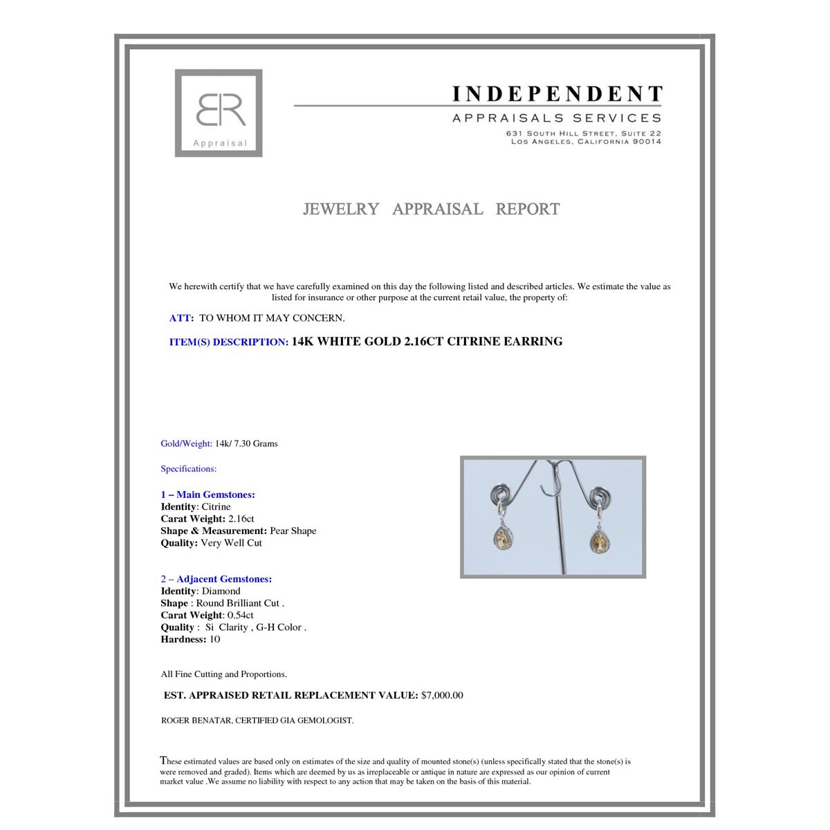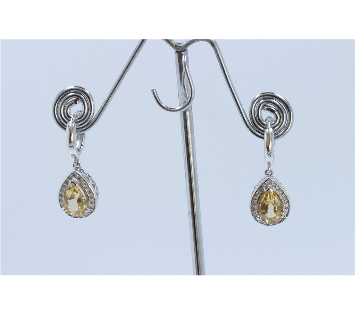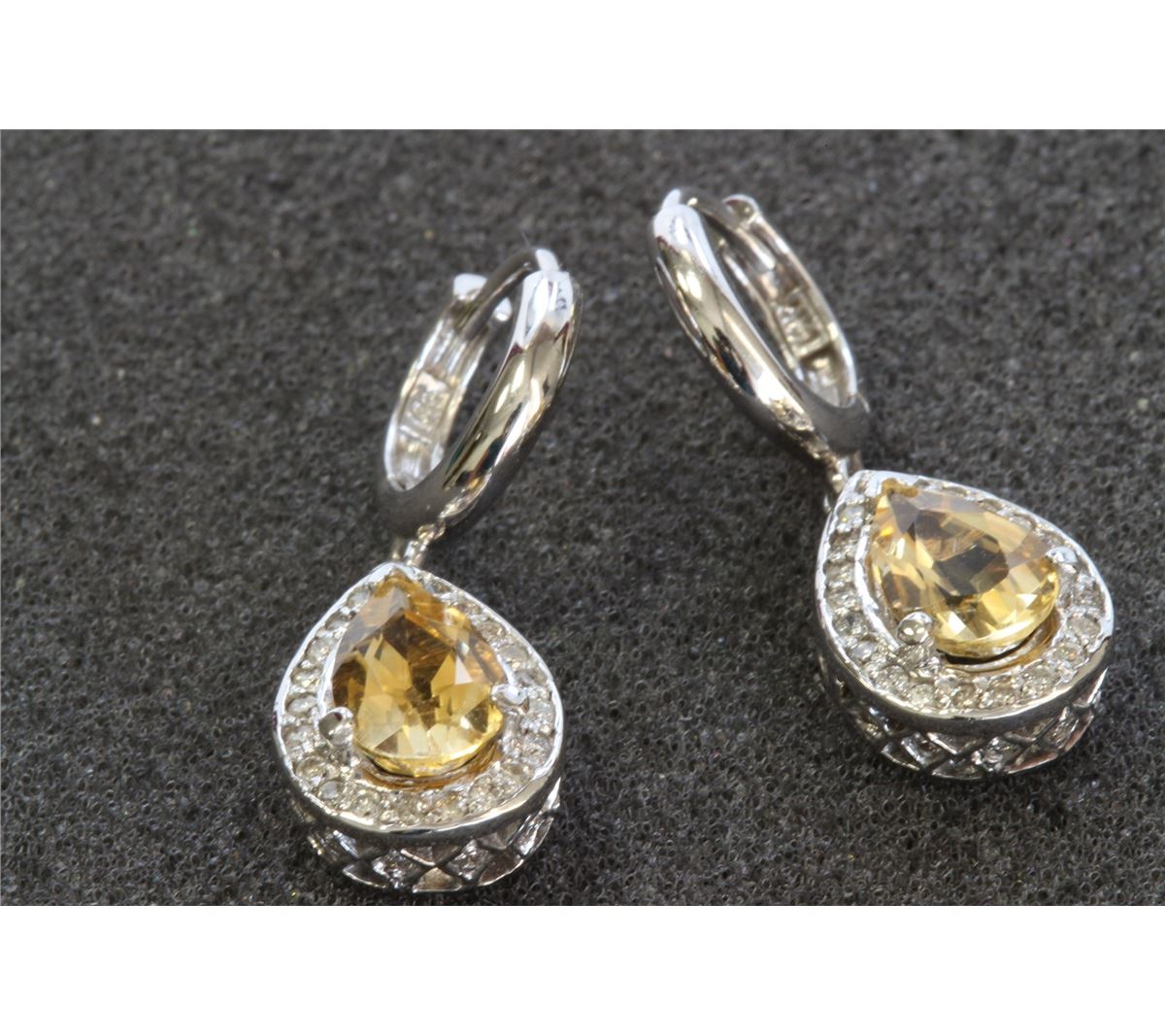 14K WHITE GOLD EARRING:7.3g/Diamond:0.54ct/Citrine:2.16ct