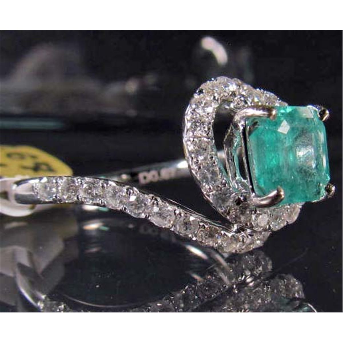 Comes w/ GLA Appraisal of $15,875.00. One Emerald center stone. 38 round full cut Diamonds. Emerald 1.31 cts, Diamonds 0.67 cts, Total Weight 3.50 grams.
