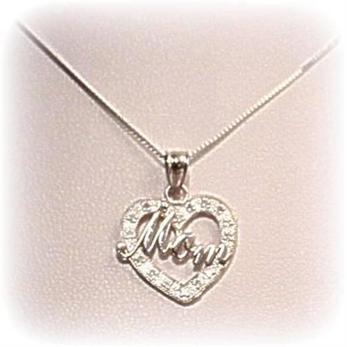 [137267306] 14K WHITE GOLD HEART PENDANT READS "MOM" AND IS STRUNG ON A 17 INCH BABY BOX CHAIN IN 14K WHITE GOLD. This pendant is embellished with genuine diamonds and it retails at $165.00 <p>This dainty pendant measures approximately 1/2 inch wide by 3/4 inch tall (including bail). Perfect for Mother's Day! <P>Our Gold Factory recently purchased the entire inventory from a Jewelry Firm that went out of business. We were able to purchase these items at a huge savings, which we now pass on to you! This is one of many of our one of a kind items. <p> Please note: our merchandise is guaranteed 100% to your satisfaction. If you don?t LOVE this item, simply return it for a complete refund of your purchase price. Our feedback is 100% positive, so you can shop with confidence, knowing that your satisfaction is our primary concern. <p> Please click on the ?Calculate Shipping? button below to see your actual shipping charges.