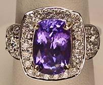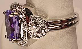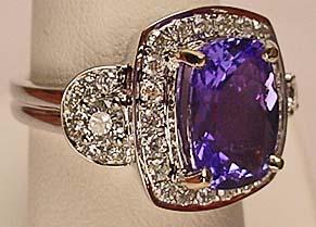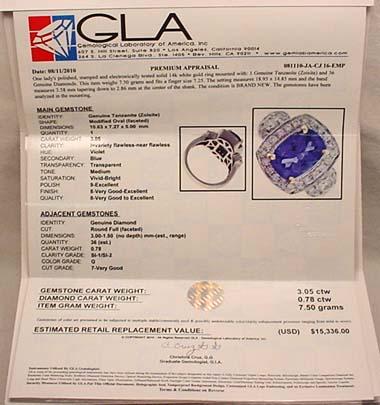 14K WHITE GOLD LADIES TANZANITE AND DIAMOND RING - SIZE 7.25 - Comes w/ GLA Appraisal of $15,336.00. 1 oval cut Tanzanite center stone. 36 round full cut Diamonds. Tanzanite 3.05ct., Diamonds 0.78ct., Total Weight 7.50 grams.