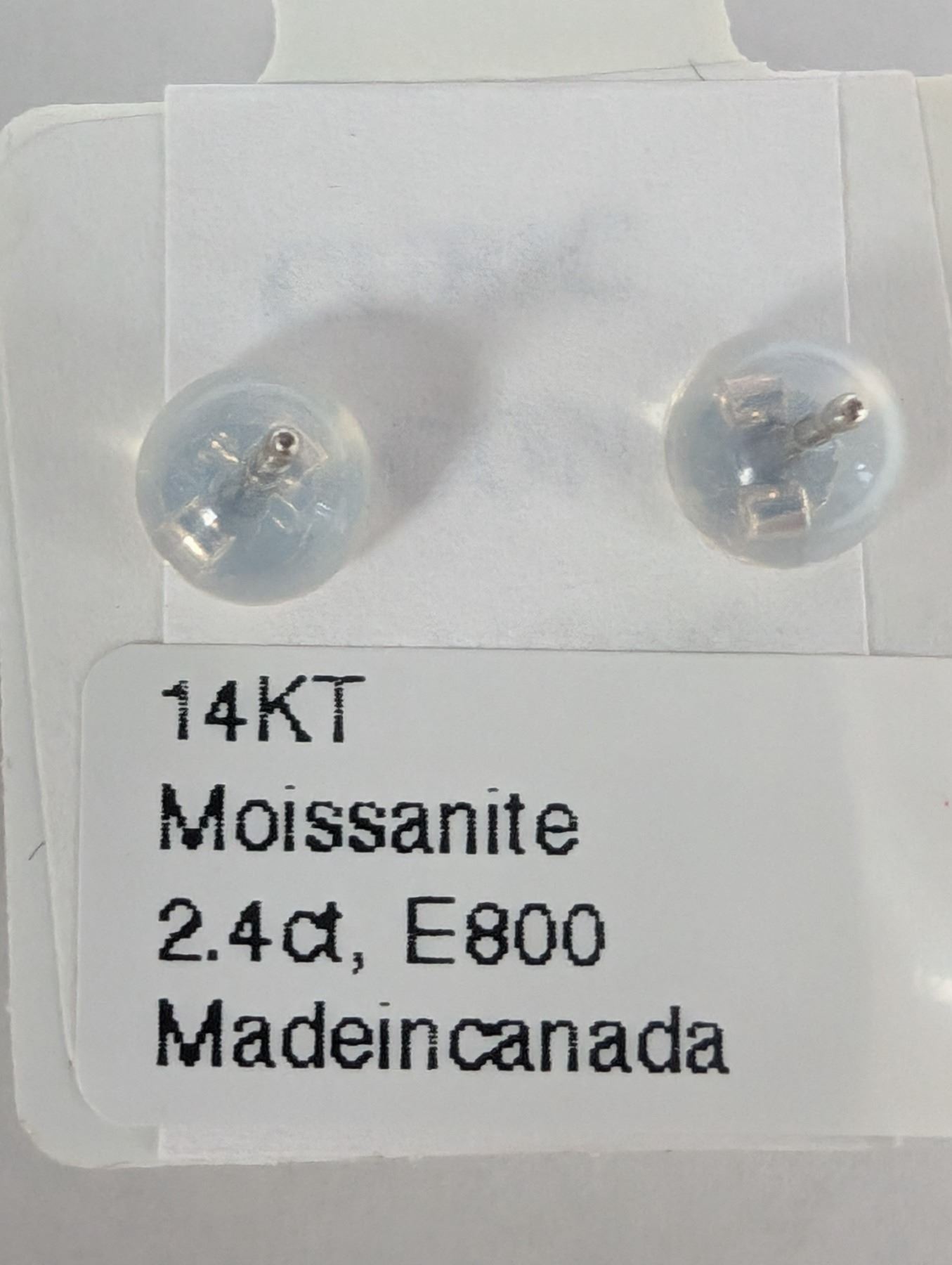 14K WHITE GOLD MOISSANITE 2.4CT LASER CUT EARRINGS