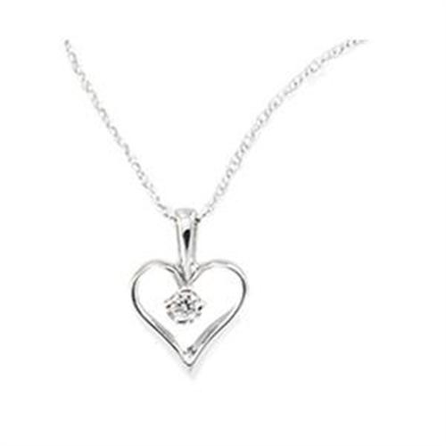14k White Gold Necklace featuring a Heart shape White Gold Pendant with a Diamond. The Pendant is suspended from a 14k White Gold Chain 18 inches.