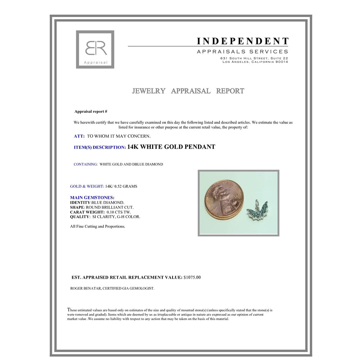 14K WHITE GOLD PENDANT 0.52g/BLUE Diamond 0.1ct