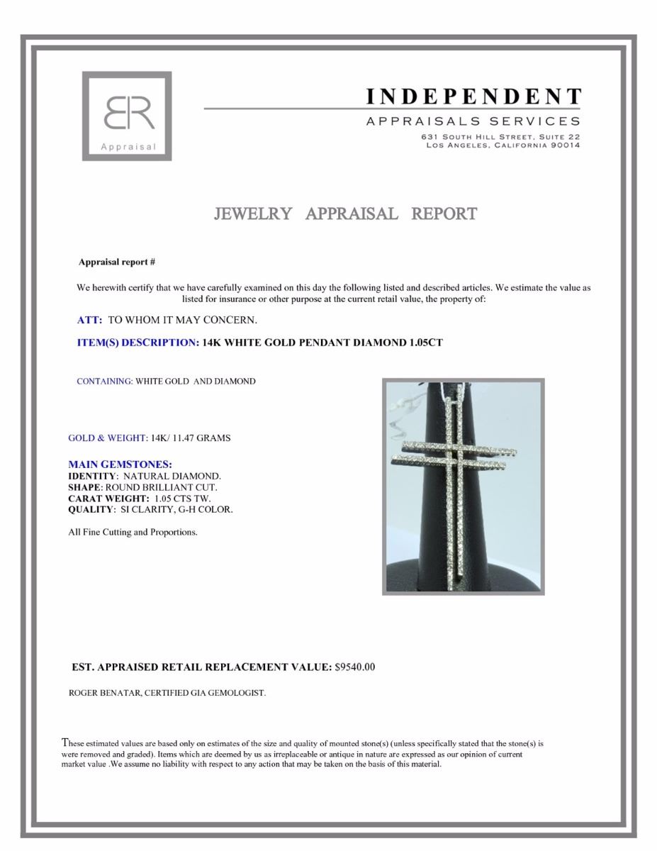 14K WHITE GOLD PENDANT 11.47GRAM DIAMOND 1.05CT