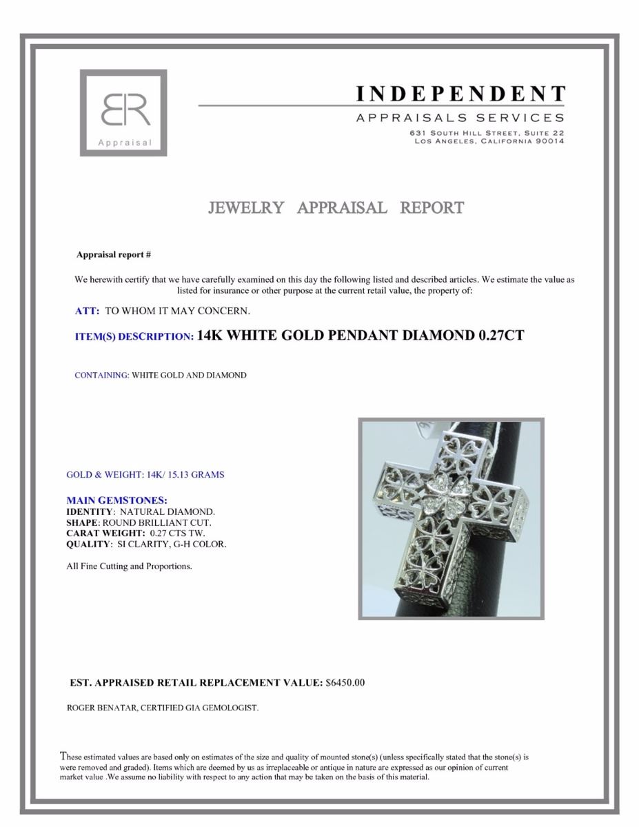 14K WHITE GOLD PENDANT 15.13GRAM DIAMOND 0.27CT