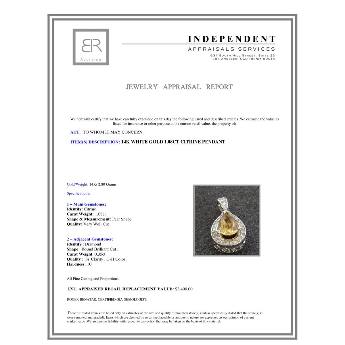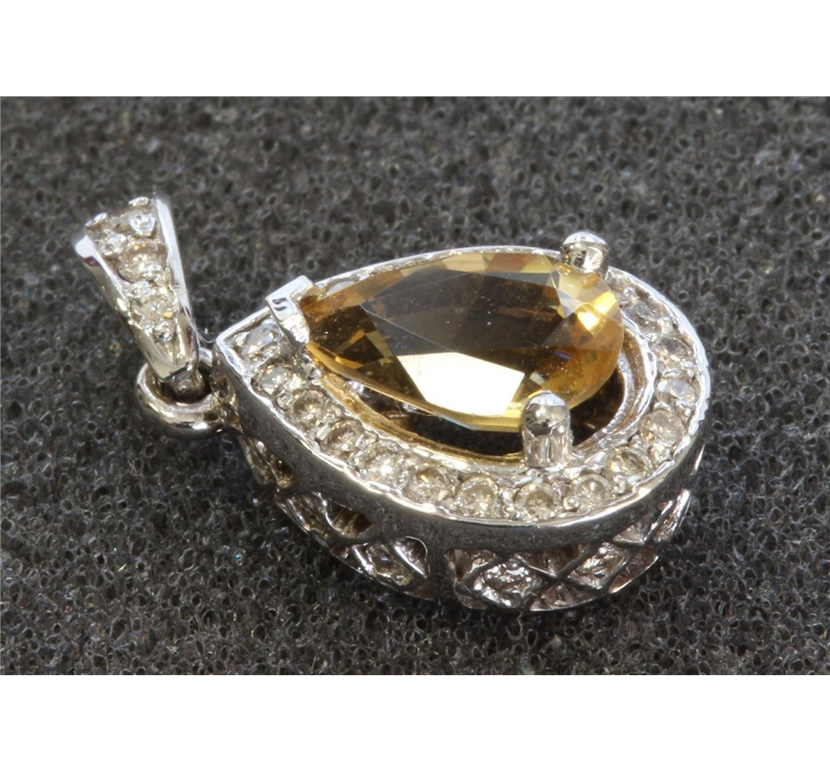 14K WHITE GOLD PENDANT:2.8g/Diamond:0.35ct/Citrine :1.08ct