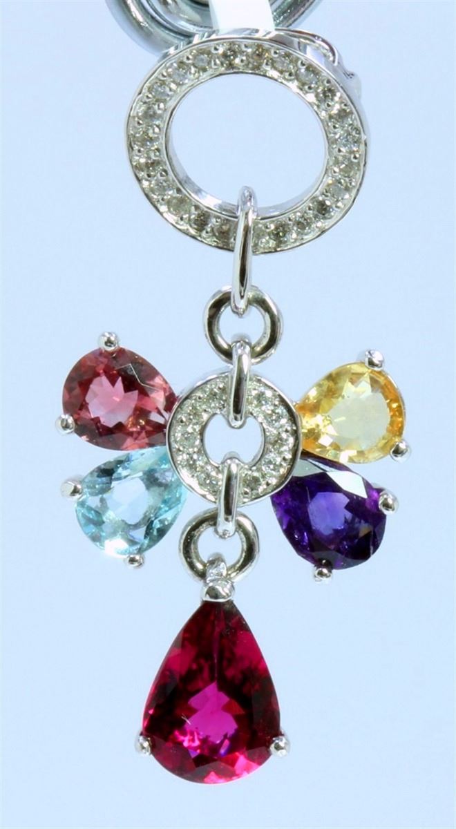 14K WHITE GOLD PENDANT 4.00GRAM DIAMOND 0.21CT YELLOW SAPPHIRE 0.55CT PINK TOURMALINE 0.52CT RUBELLITE 1.25CT AMETHYST 1.00CT AQUAMARINE 0.58CT