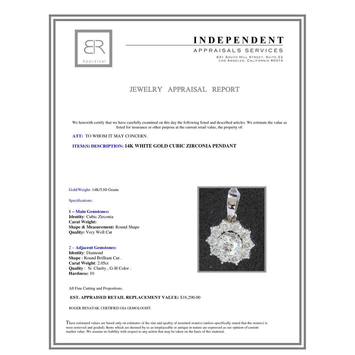 14K WHITE GOLD PENDANT: 5.6g / Diamond: 2.05ct / Center CUBIC ZIRCONIA