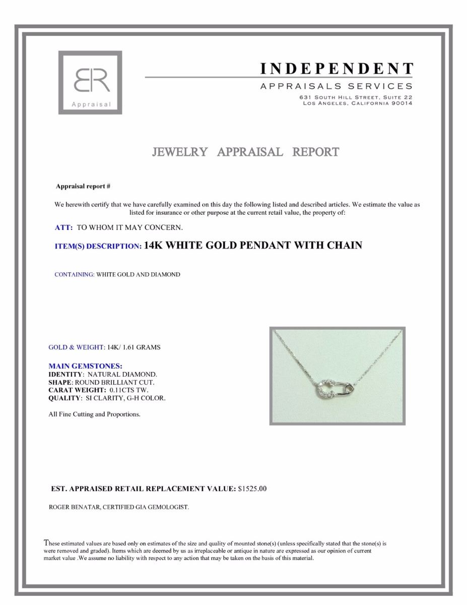 14K WHITE GOLD PENDANT WITH CHAIN 1.61g/Diamond 0.11ct