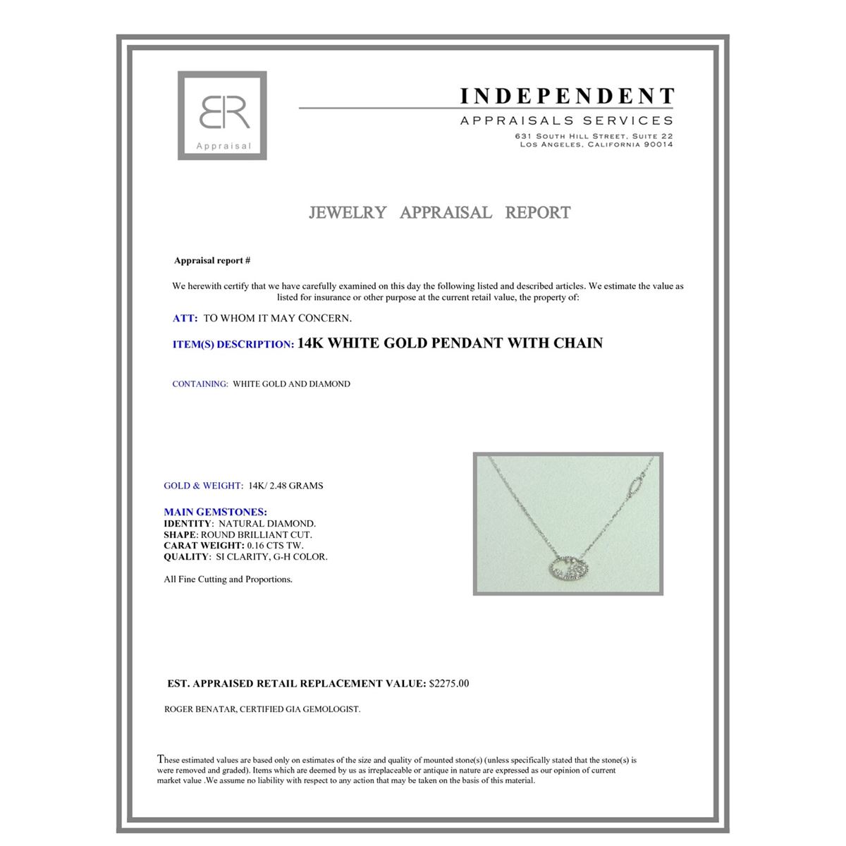 14K WHITE GOLD PENDANT WITH CHAIN 2.48g/Diamond 0.16ct