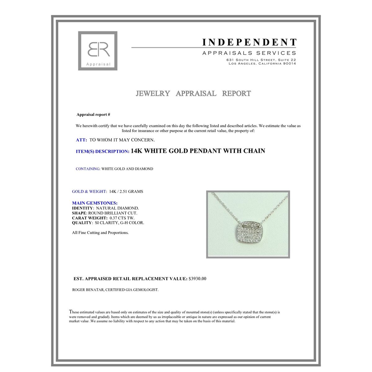 14K WHITE GOLD PENDANT WITH CHAIN 2.51g/Diamond 0.37ct