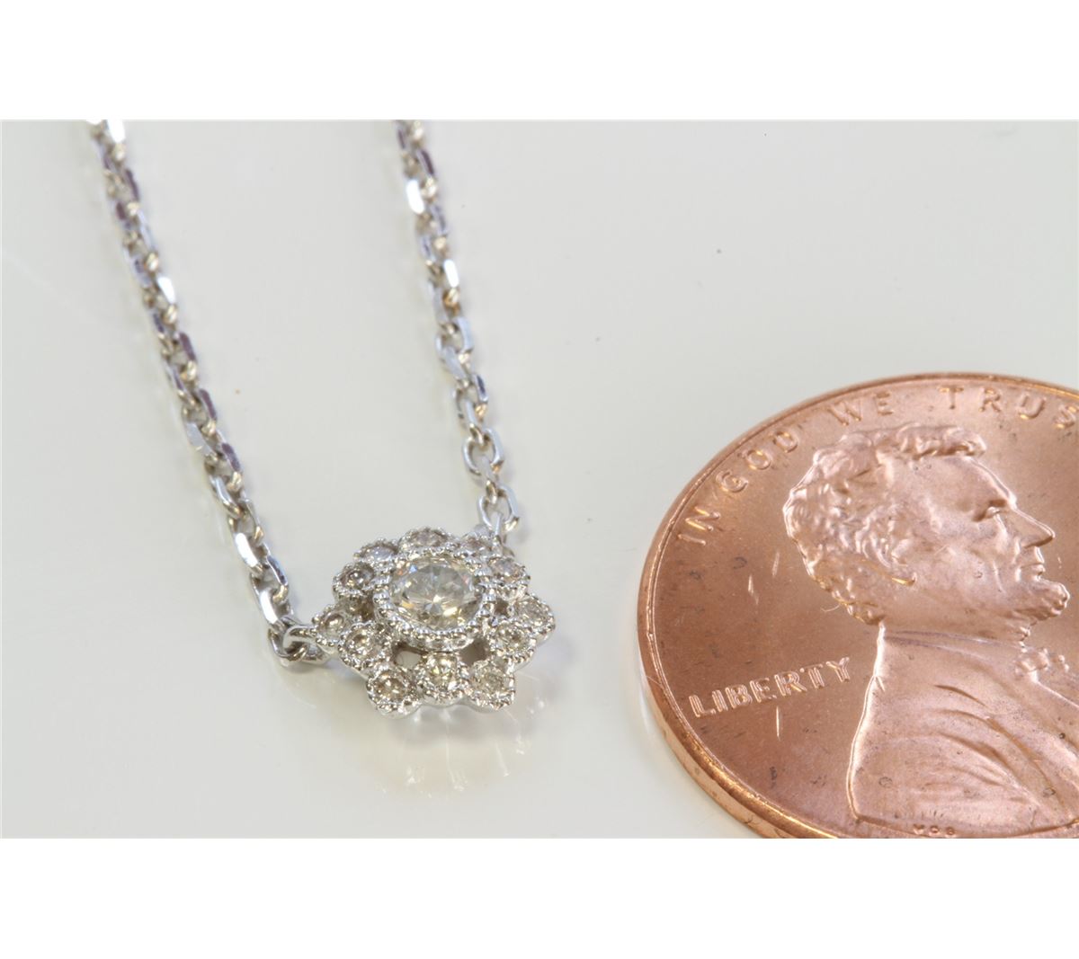 14K WHITE GOLD PENDANT WITH CHAIN :2.66g/Diamond:0.19ct