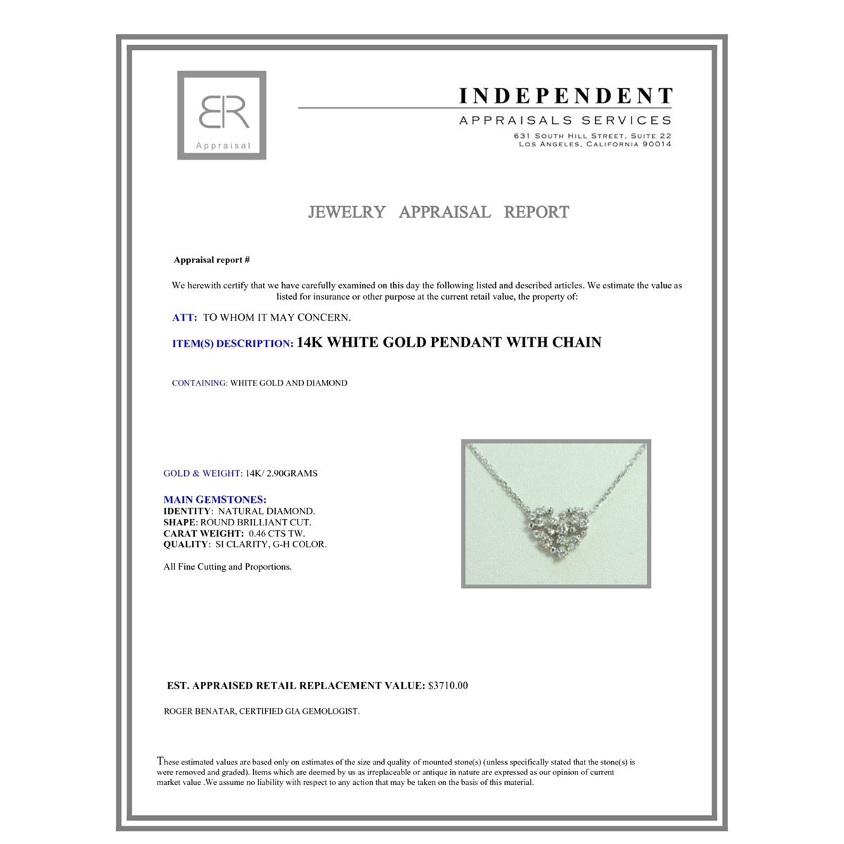 14K WHITE GOLD PENDANT WITH CHAIN 2.9g/Diamond 0.46ct