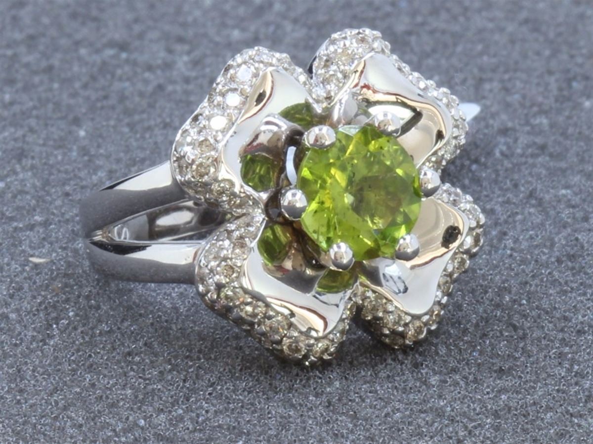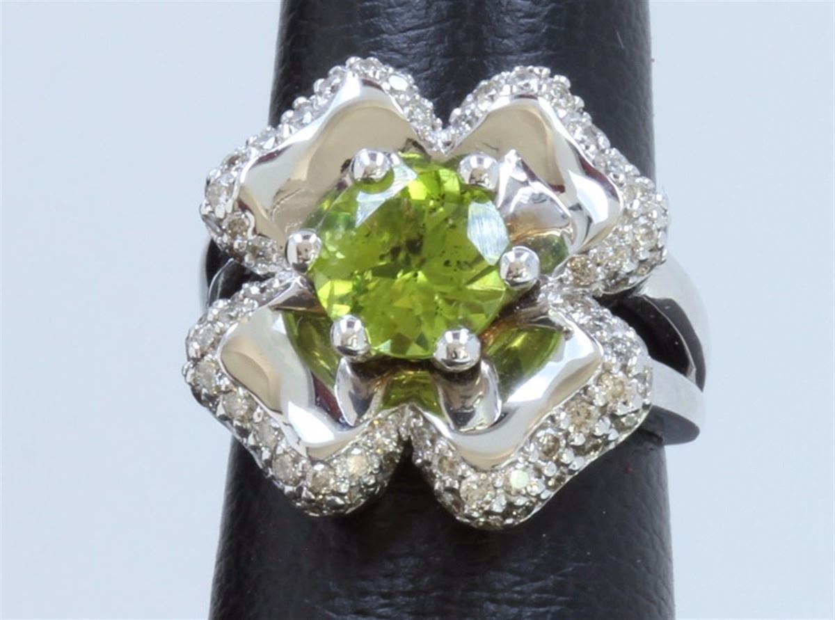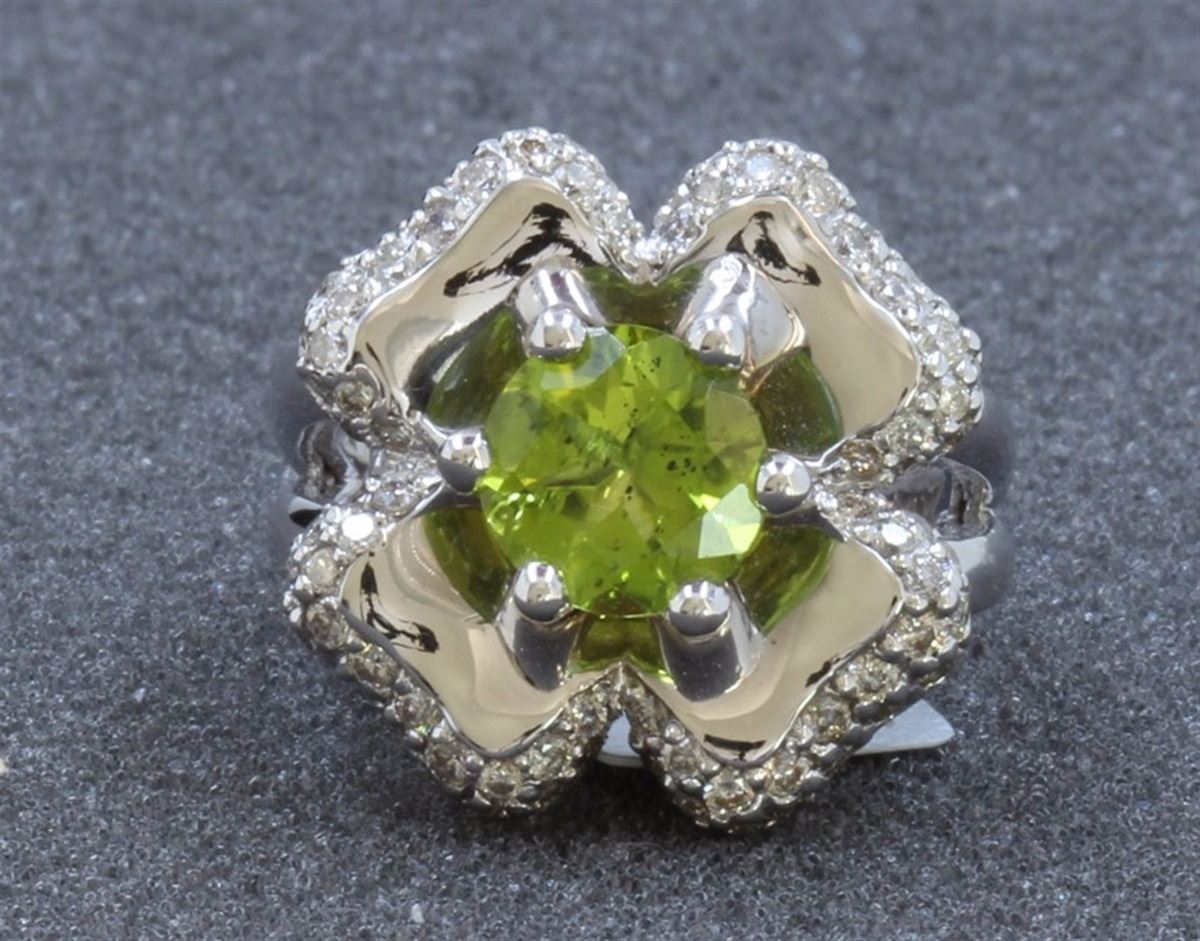 14K WHITE GOLD PERIDOT RING : 11.72g / Diamond: 0.83ct / Peridot: 1.8ct