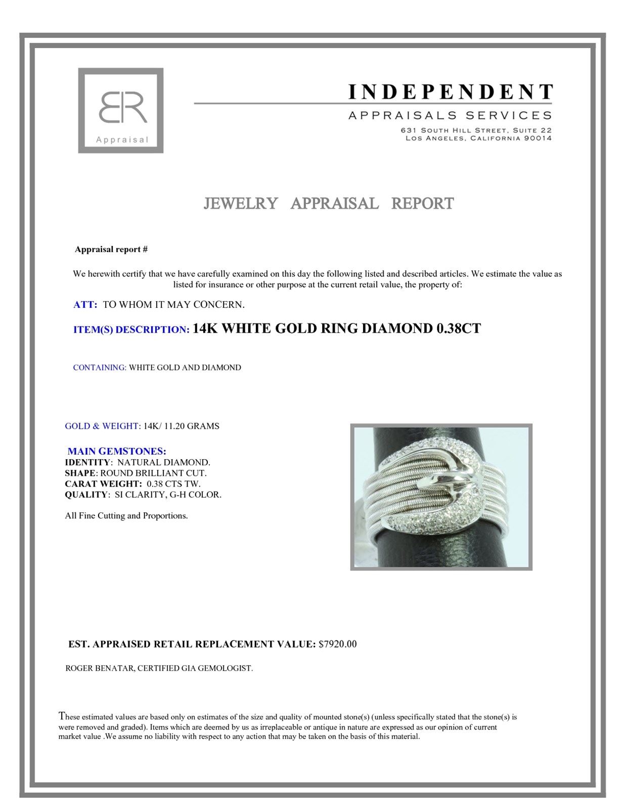 14K WHITE GOLD RING 11.20GRAM DIAMOND 0.38CT
