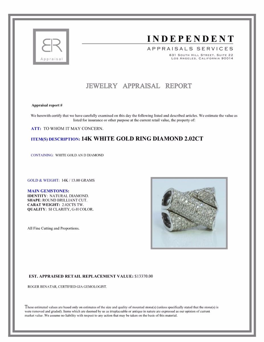 14K WHITE GOLD RING 13.00 GRAM DIAMOND 2.02CT