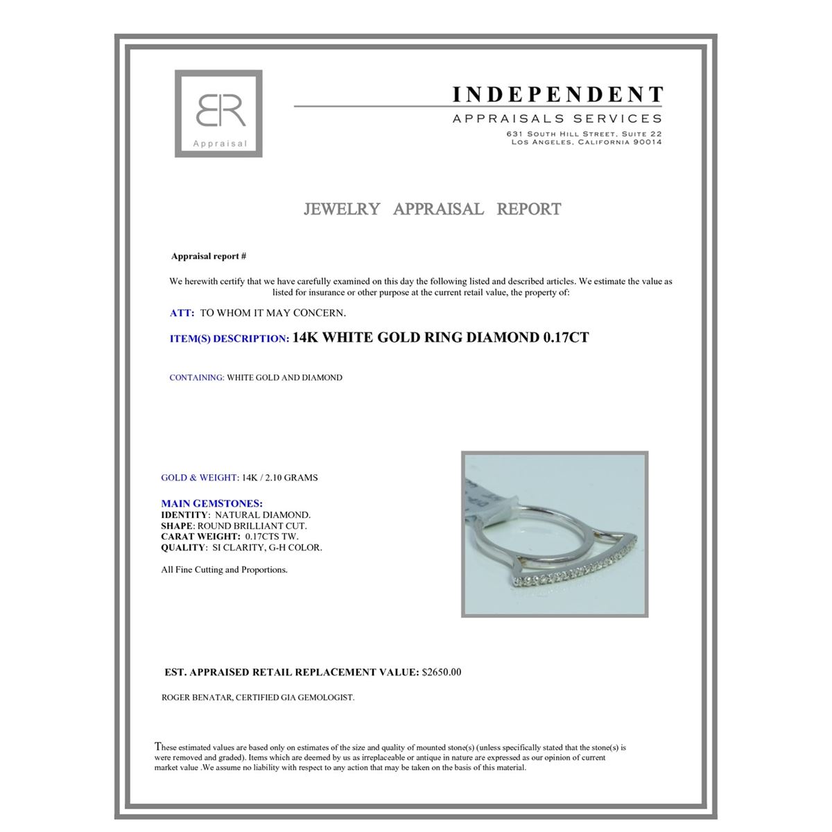 14K WHITE GOLD RING 2.10GRAM DIAMOND 0.17CT