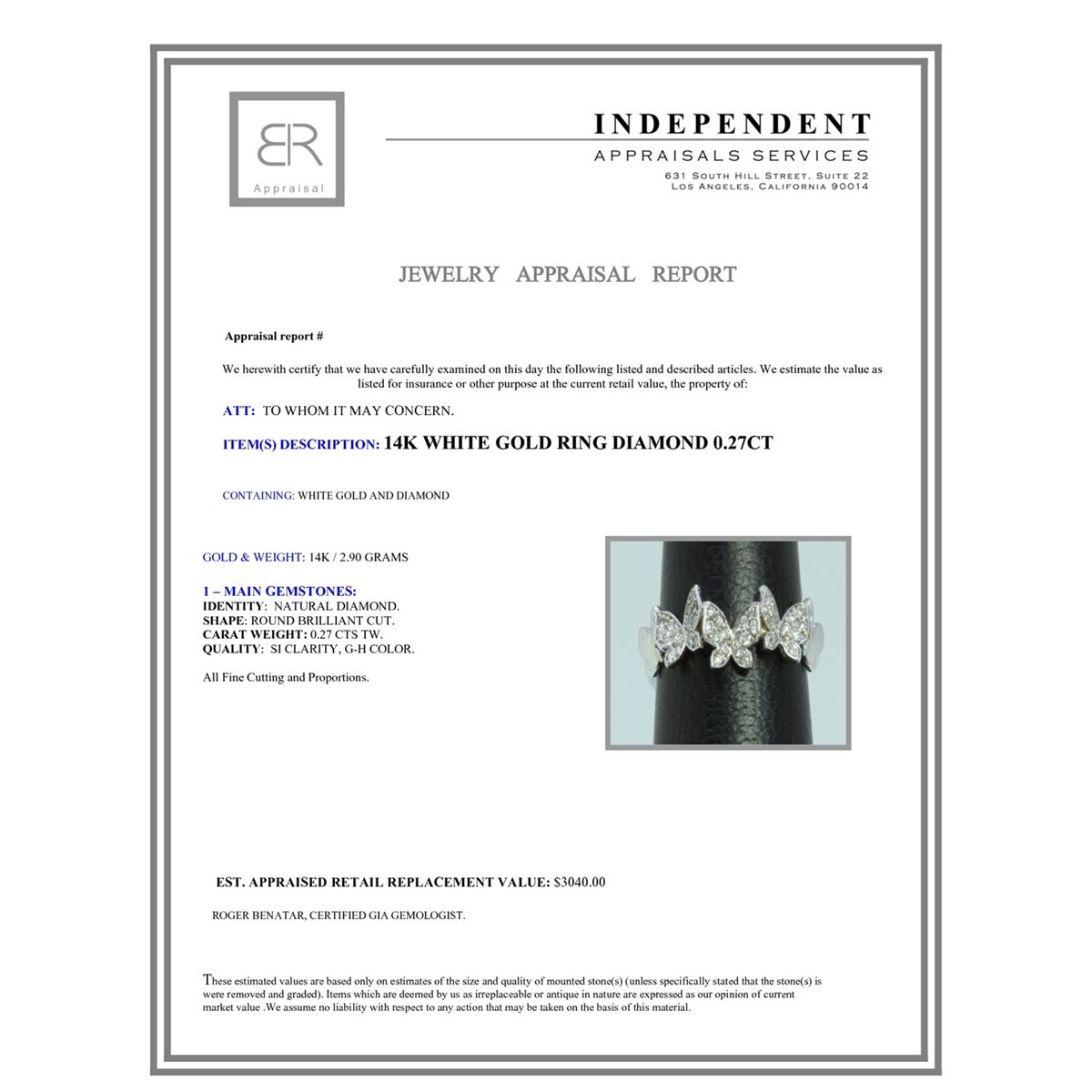 14K WHITE GOLD RING 2.90GRAM DIAMOND 0.27CT