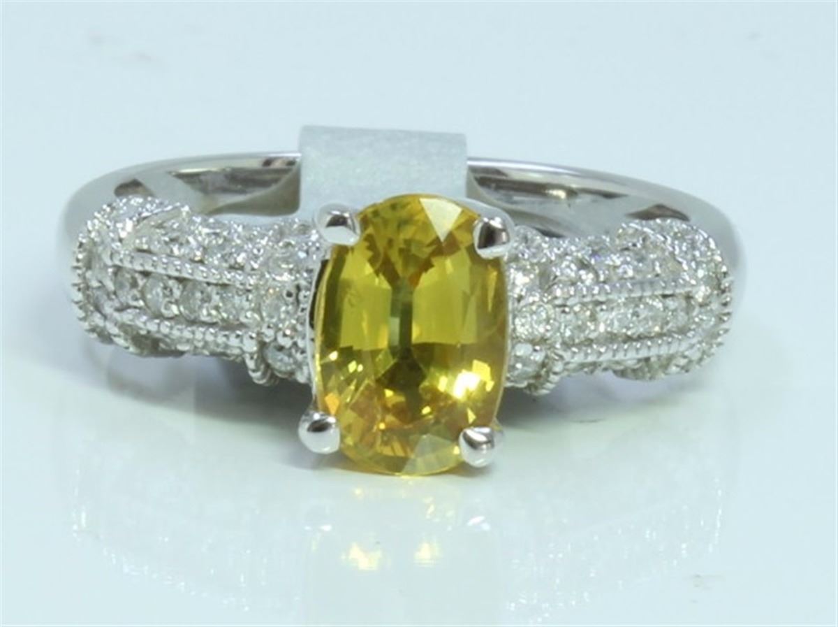 14K WHITE GOLD RING 4.1 GRAM DIAMOND 0.33CT YELLOW SAPPHIRE 1.65CT